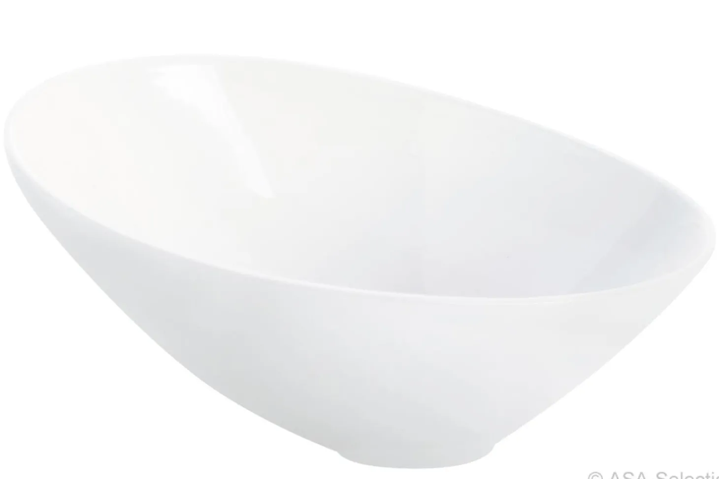 Die Länge der Schale beträgt 22,5 cm, gefertigt aus Porzellan und in einem zeitlosen weiß gehalten.