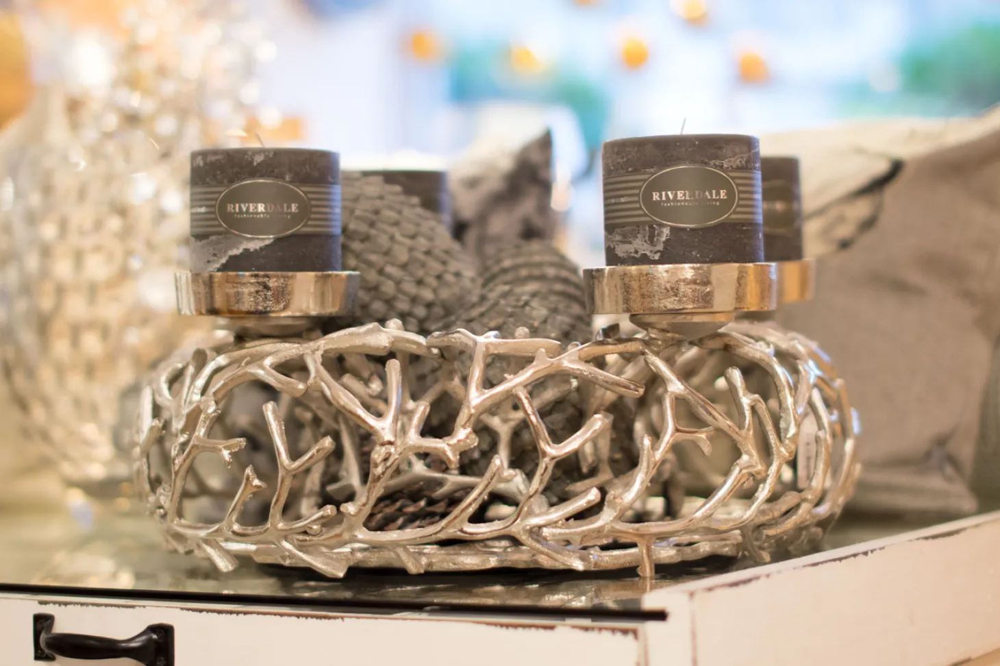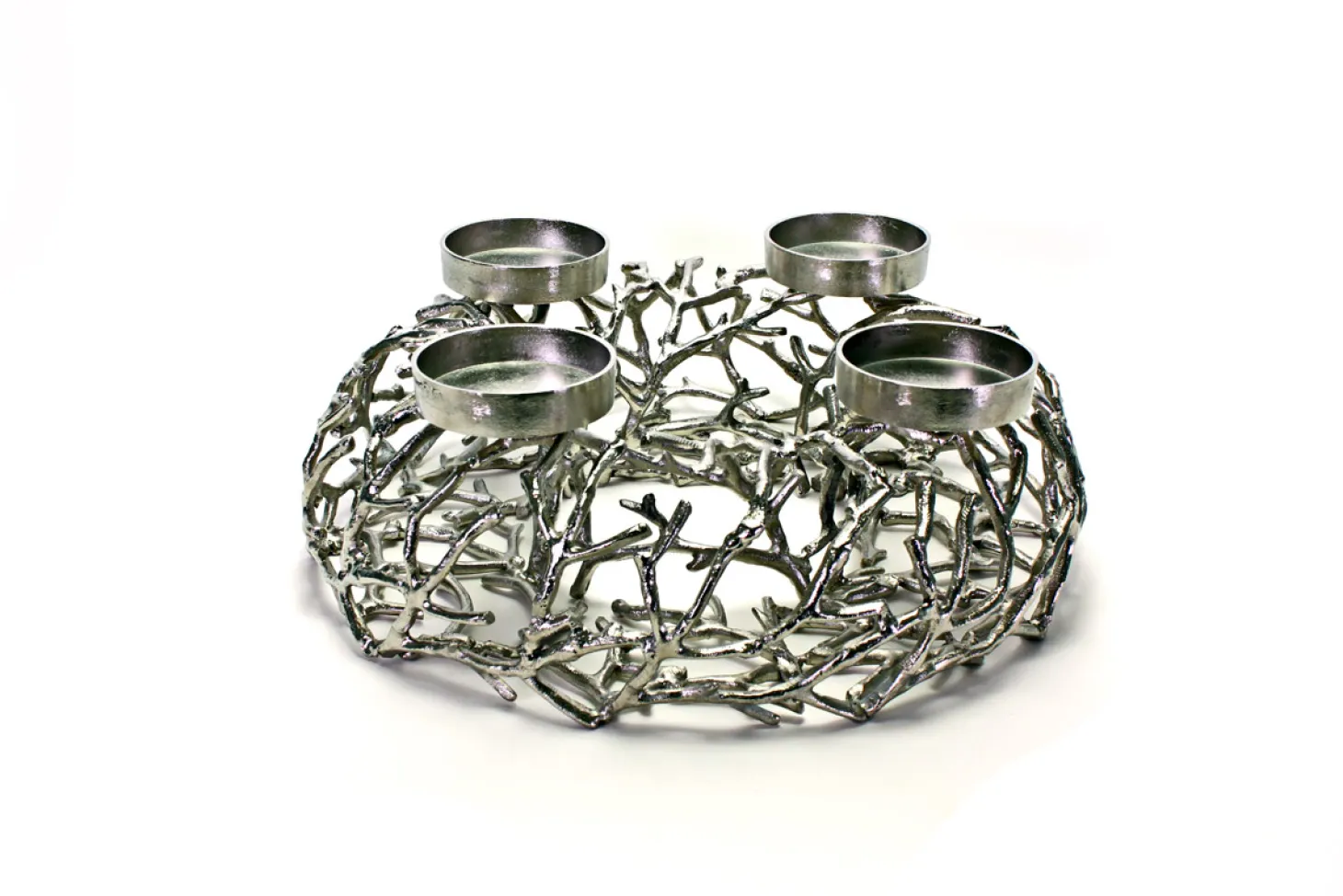Produktinformationen „Astkranz mit 4 Kerzenhalter Silber S“