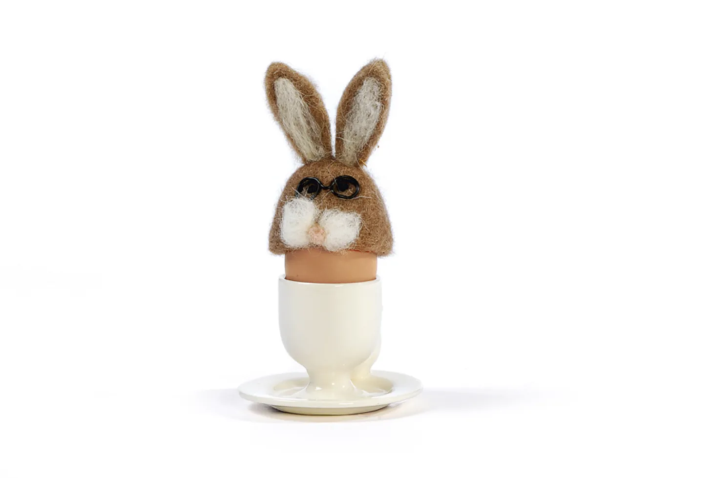 Produktinformationen „Eierwärmer aus Filz Hasenkopf mit Brille“