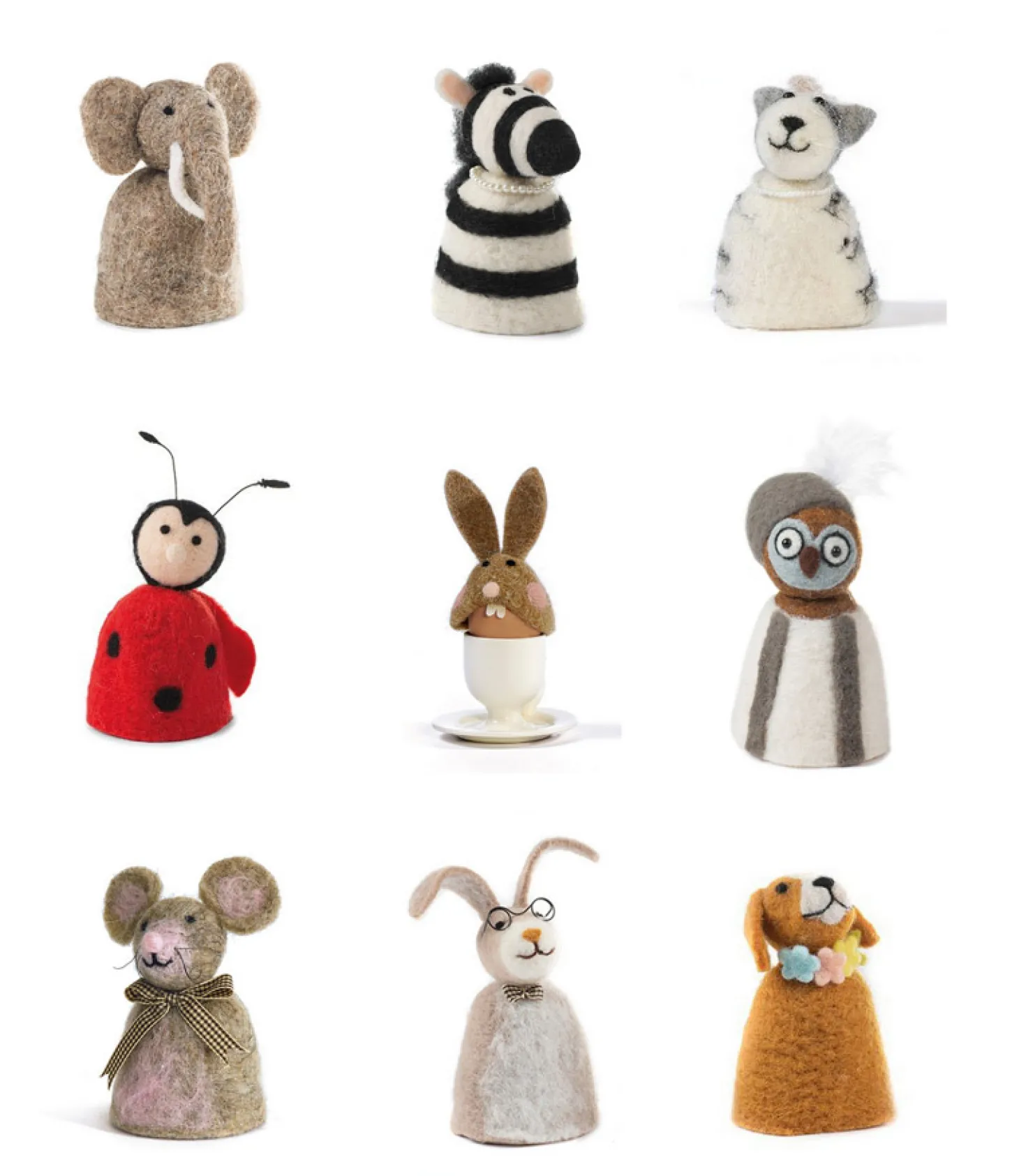 Jedes Eierwärmer Filz Tier ist mit kleinen, besonderen Extras geschmückt – sei es die elegante Perlenkette des Zebras oder die lustige Brille des Hasen. Dadurch erkennt jeder am Tisch sein eigenes Ei sofort wieder, ganz gleich ob weich oder hart gekocht. Praktisch und dekorativ zugleich!