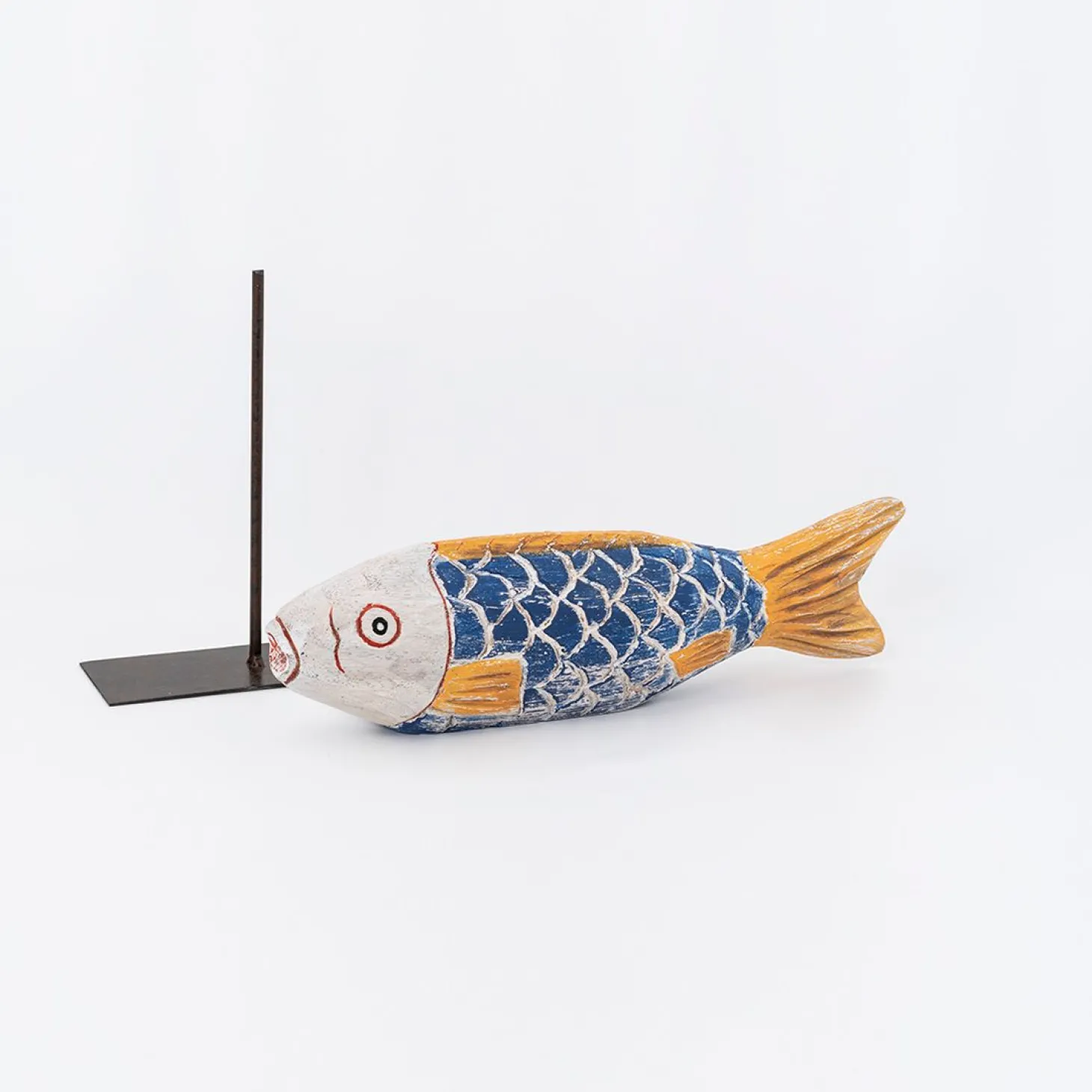 Setzen Sie einen einzigartigen, maritimen Akzent in Ihrem Zuhause mit dem Fisch in Holz in leuchtenden Farben geschnitzt von Batela. Aus Holz gefertigt und mit farbenfrohen Details versehen, wird dieses dekorative Stück die Aufmerksamkeit aller auf sich ziehen, die Ihren Raum betreten. Mit den tollen Farben schafft die Fischfigur eine Präsenz, um ein beeindruckendes Statement abzugeben und passt aufgrund ihrer geringen Größe dennoch in fast jeden Wohnbereich. Stellen Sie diese Figur mit ihrem Metallständer oder ohne Ständer auf. Ganz gleich, wie Sie ihn verwenden, er wird mit Sicherheit ein Blickfang in Ihrem Zuhause sein.