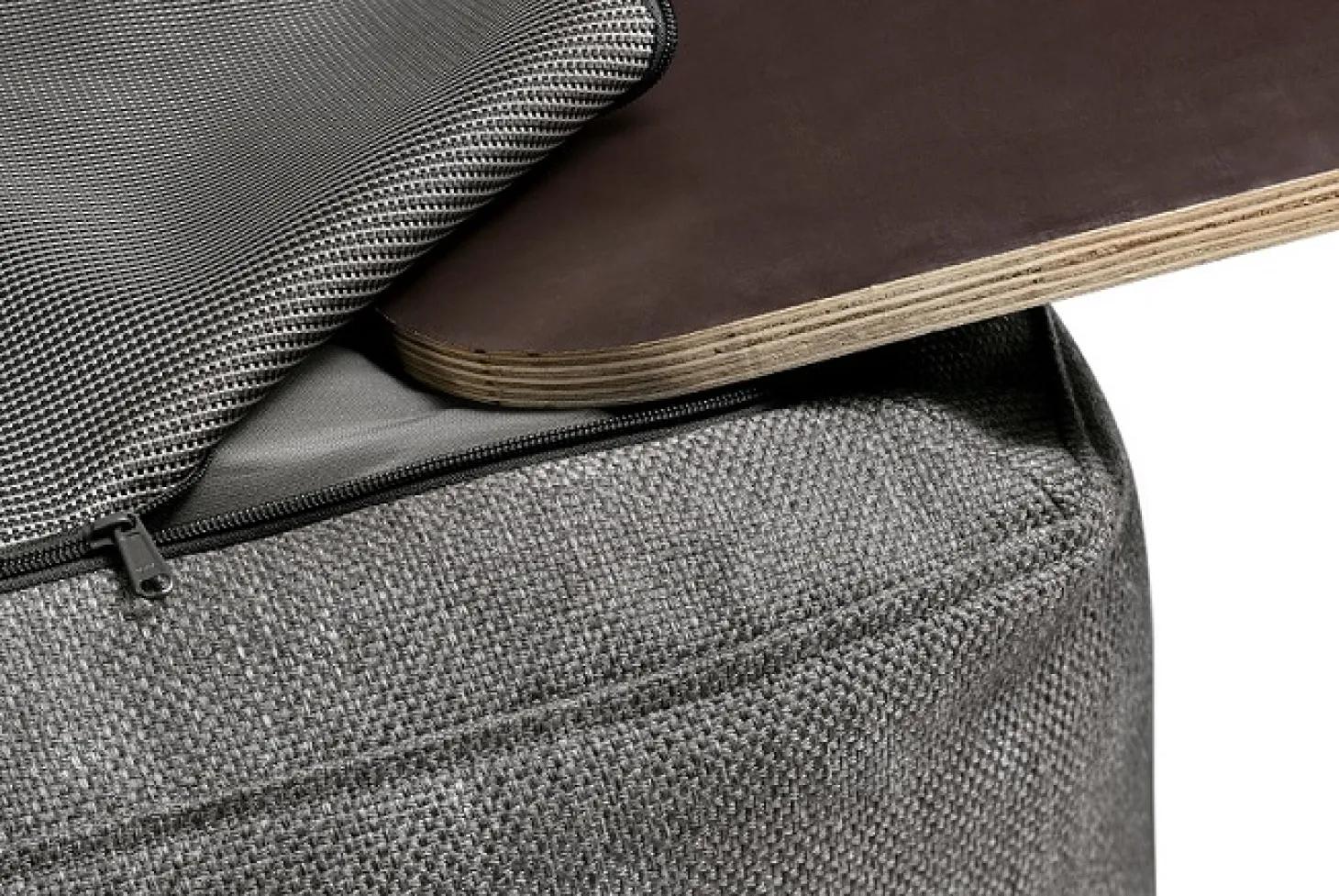 Die Bodenplatte lässt sich ganz unkompliziert in das Zwischenfach an der Unterseite des jeweiligen Moduls einschieben. Anschließend können die Möbelfüße von außen angebracht werden. Mit dem passenden Möbelverbinder lassen sich mehrere Module unsichtbar fixieren und zu einer stabilen Lounge nach Ihren Vorstellungen zusammenstellen. Für jedes weitere Modul wird ein 2er-Set benötigt.