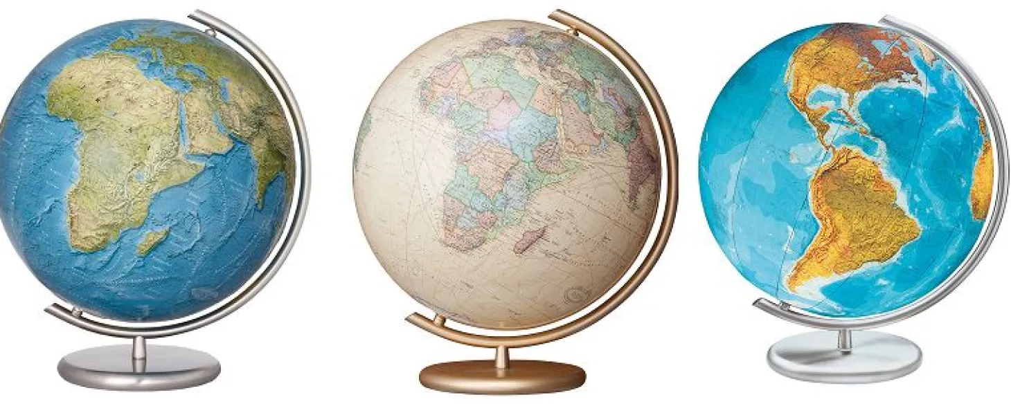 Der Tischglobus Imperator von Columbus ist mit seinen 40 cm Durchmesser ideal um ihn auf Ihren Tisch, Ihren Schreibtisch und Ihr Regal zu stellen. Das exlusive Design des Gestells ist in Messing und Edelstahl erhältlich. Kombinieren Sie Ihr gewünschtes Kartenbild mit einem der beiden Gestellen, damit Ihr neuer Globus ideal zu Ihrem Stil und Ihrer Einrichtung passt.