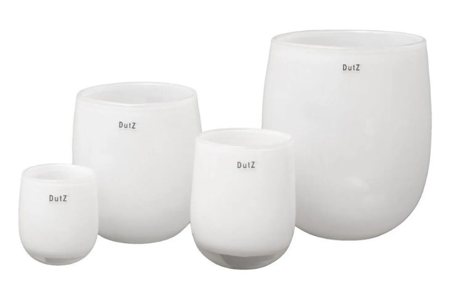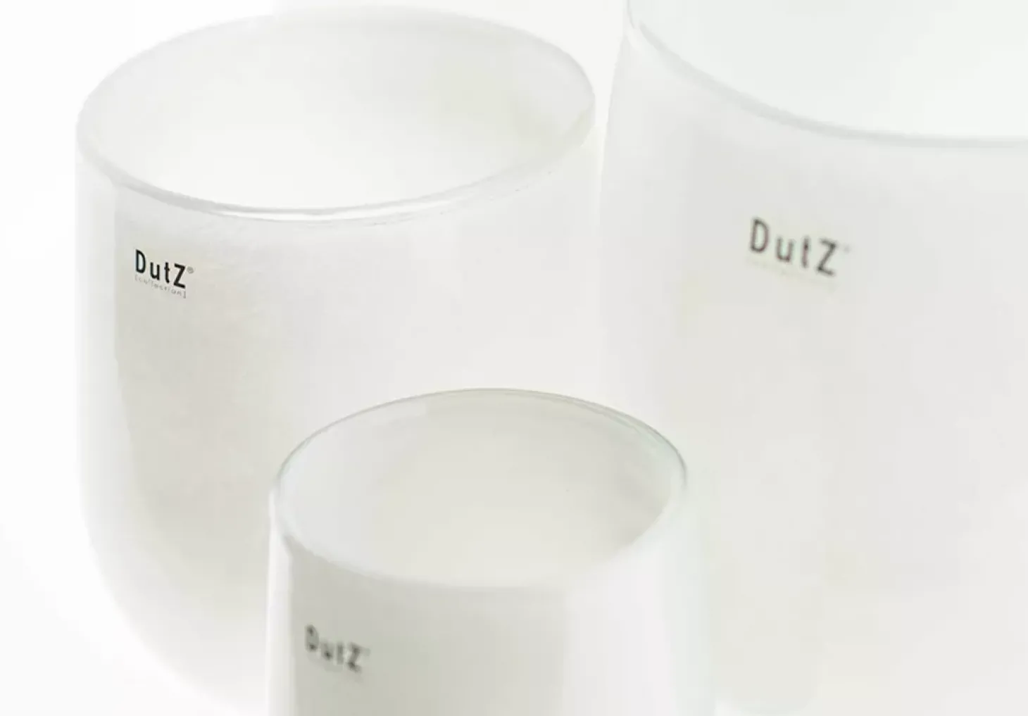 Die Vase – Barrel H24cm; ∅ 18 cm, white von DutZ ist eine mundgeblasene Vase mit hoher Qualität. Das Glas der Vase ist dick und wurde in Europa hergestellt. Die weiße Vase ist geeignet für Blumensträuße, Orchideen oder Sukkulenten. Durch die runde Form der Blumenvase eignet sich die Barrel Vase auch als Glaswindlicht für gemütliche Abende. Der Glastopf ist nicht nur Dekoration für Blumen und Kerzen, sondern sieht auch mit Pflanzen dekorativ schön aus. Dekorieren Sie die Vase – Barrel H24cm; ∅ 18 cm, white von DutZ auf einer Fensterbank oder auf einem Sideboard in Ihrem Zuhause. Auch für Praxis- oder Geschäftsräume eignet sich die Vase hervorragend.