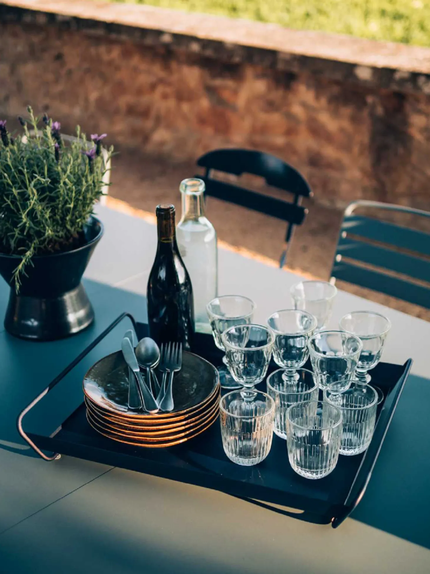 Das große Alto Tablett von Fermob ist nicht nur ein praktischer Gebrauchsgegenstand, sondern glänzt auch als stilvolles Dekoaccessoire in Ihrem Zuhause. Mit einer großzügigen Größe von 53 x 38,5 cm bietet dieses Tablett ausreichend Platz für all Ihre Bedürfnisse. Es ist aus robustem Stahlblech gefertigt, während die Griffe aus Stahldraht bestehen, was eine hohe Langlebigkeit und Stabilität gewährleistet. Dank des modernen und eleganten Designs muss das Tablett nach dem Gebrauch nicht verstaut werden, sondern kann als dekoratives Element auf Ihrem Tisch verbleiben. Verleihen Sie Ihrem Interieur einen Hauch von Eleganz und Funktionalität zugleich. Das Alto Tablett ist in 11 modernen Farben erhältlich, die sich mühelos in jedes Farbschema integrieren lassen. Ob Sie eine neutrale Farbe für ein harmonisches Ambiente oder eine kräftige Farbe für einen auffälligen Akzent bevorzugen – Fermob bietet die perfekte Auswahl. Diese Farbvielfalt ermöglicht es Ihnen, das Tablett individuell an Ihren Stil und Ihre Einrichtung anzupassen. Ideal für den Privathaushalt, aber auch für den Einsatz in Restaurants und Gaststätten, bietet das Alto Tablett eine flexible und ästhetische Lösung für verschiedenste Anlässe und Umgebungen. Das Servier-Tablett ist nicht nur schön, sondern auch äußerst praktisch. Dank der robusten Stahlkonstruktion und der wetterfesten Pulverbeschichtung ist es perfekt für den Einsatz im Freien geeignet. Egal, ob es regnet oder die Sonne scheint, dieses Tablett bleibt unversehrt und behält seine strahlende Farbe. Nutzen Sie es für Gartenpartys, auf der Terrasse oder im Innenbereich – die Einsatzmöglichkeiten sind nahezu unbegrenzt. Darüber hinaus bietet Fermob die Möglichkeit der individuellen Anpassung: Lassen Sie Ihr Firmenlogo per Siebdruck oder Laserschnitt integrieren und machen Sie das Tablett zu einem einzigartigen Markenzeichen für Ihr Restaurant oder Ihre Gaststätte.