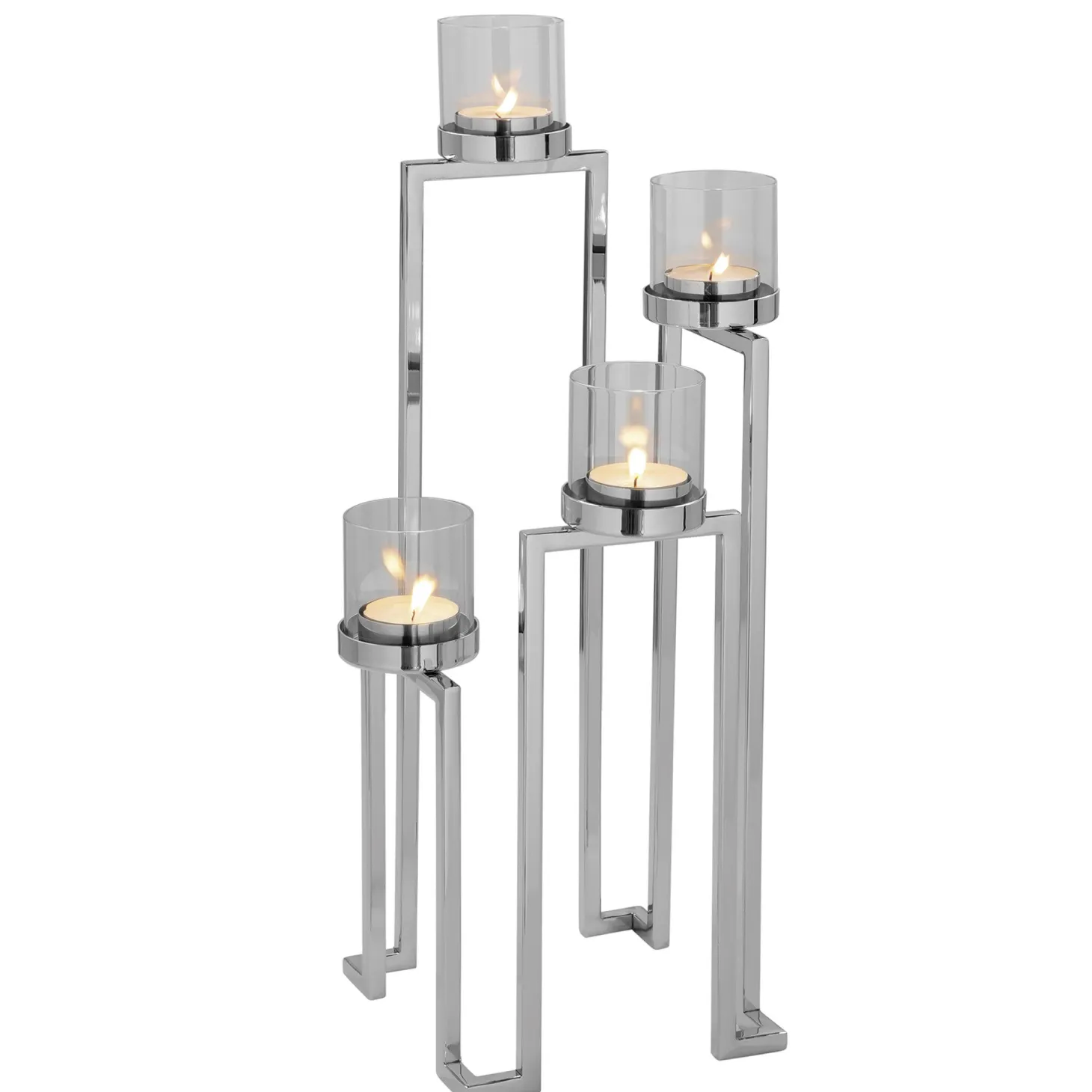 Der GRANT moderner Bodenteelichthalter – silber von Fink besticht durch seine klare geometrische Form und das moderne, minimalistische Design. Mit einer Höhe von 56 cm und einem Durchmesser von 22 cm fügt sich der vernickelte Kerzenständer elegant in jedes Interieur ein. Vier abnehmbare Gläser (Modell Melody) gehören zum Lieferumfang und eignen sich ideal für Maxi-Teelichter, die dem Raum ein warmes, heimeliges Licht verleihen.