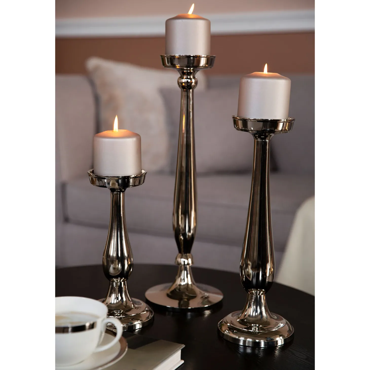 Die hochwertige Verarbeitung sorgt für Stabilität und Standfestigkeit, was ihn besonders für größere Stumpenkerzen geeignet macht. Sein strahlender Glanz und die geschwungenen Linien heben ihn von herkömmlichen Kerzenhaltern ab und machen ihn zu einem eleganten Element, das sich sowohl in klassischen als auch in modernen Wohnstilen harmonisch einfügt.