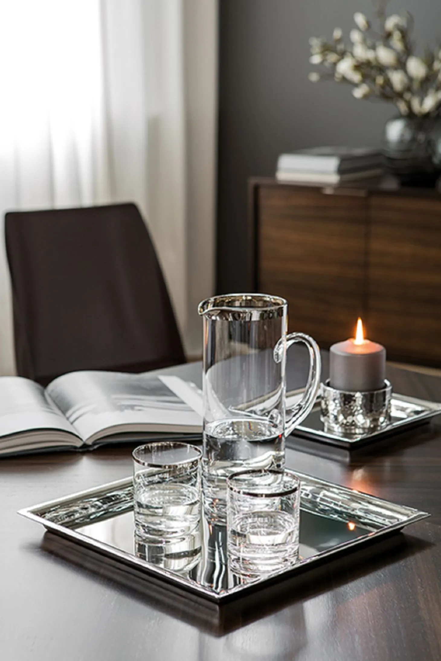 Das Nagano Serviertablett in Silber von Fink ist ein absoluter Allrounder, welcher in Ihrem Zuhause auf keinen Fall fehlen sollte. Das edle Silbertablett kann zum Servieren von Speisen und Getränken genutzt werden, es sieht nicht nur stilvoll aus, Sie sparen sich auch das Öfteren laufen. Bestücken Sie das lebensmittelechte Tablett aus Edelstahl mit frischen Speisen, kleinen Häppchen oder frischem Kuchen und servieren Sie es direkt auf dem Tisch. Das Tablett ist sowohl in quadratischer und rechteckiger Form erhältlich – für eine große Anzahl von Gästen können Sie einfach mehrere Tabletts miteinander kombinieren. Aber auch als Dekotablett, geschmückt mit Kerzenständern oder frischen Blumen.
