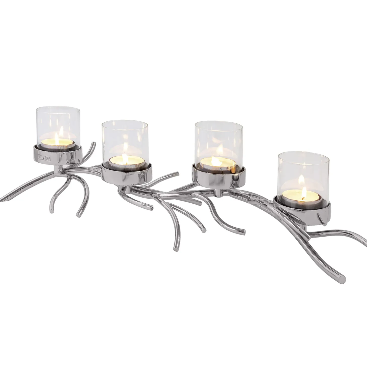 Gefertigt aus hochwertigem, vernickeltem Aluminium, ist der RAMUS Leuchter robust, langlebig und verleiht jedem Raum eine edle Note. Mit einer Höhe von 18 cm und den Maßen 66 x 24 cm ist er ideal für die Verwendung mit vier Maxi-Teelichtern in den mitgelieferten Glaszylindern. Alternativ kann der Leuchter auch mit Stumpenkerzen (Durchmesser 8 cm, Höhe 10 cm) ohne Glaszylinder verwendet werden.