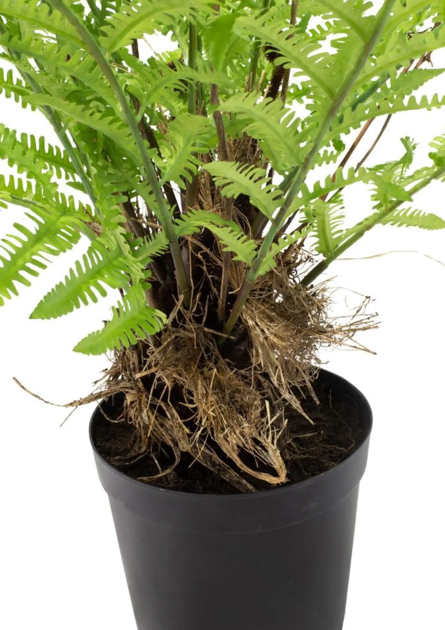 Mit ihrer ansprechenden Höhe von 90 cm fügt sich der Farn nahtlos in jedes Raumkonzept ein, sei es im Wohnbereich, Büro oder anderen Innenräumen. Da sie keinerlei Pflege benötigt, ist sie die ideale Wahl für alle, die das Flair einer natürlichen Pflanze ohne den Aufwand suchen.