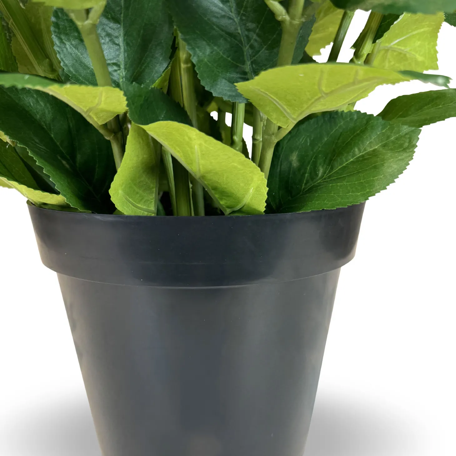 Dank der sorgfältig ausgewählten Materialien wirkt die Pflanze täuschend echt – sowohl die großen, kugelförmigen Blütenköpfe als auch die satten, grünen Blätter sind naturgetreu gestaltet. Dadurch bringt die Hortensie in jeden Raum eine frische, elegante Note, ohne dass sie jemals ihre Schönheit verliert.