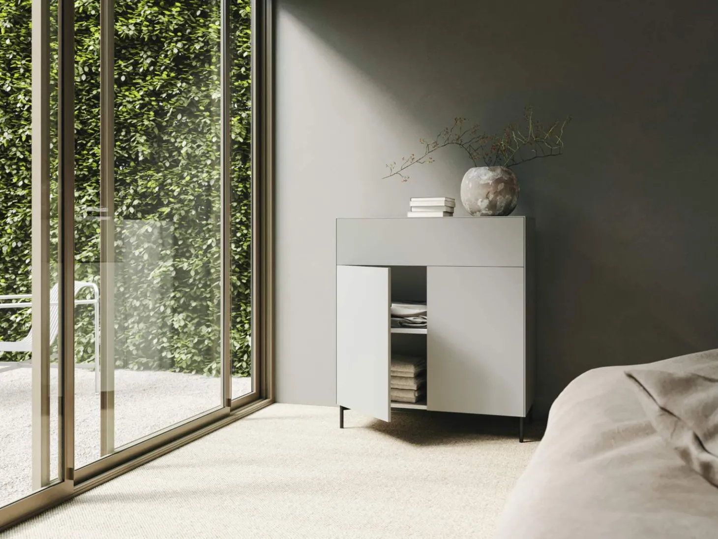 Connect überzeugt durch sein zeitloses, hochwertiges und puristisches Design, das lässt sich auch bei der Connect Kommode mit Schubkasten und Schranktüren von form1 sehen. Funktionalität und hochwertiges Material steht an erster Stelle, dies zeigt das minimalistische Türband und die pulverbeschichteten Gleitfüße, welche im Lieferumfang enthalten sind. Weiterhin in der Lieferung enthalten sind, Einlegeböden und Abdeckungen. Zusätzlich können Sie sich auch die formschönen Designerfüße oder die Kombi-Designerfüße dazu bestellen und verleihen so der Kommode einen schwebenden Look. Der Designerschrank ist ausgestattet mit einem praktischen Schubkasten und zwei Schranktüren, welche sich mit der Push-to-open Funktion öffnen lassen. Wähle deinen Favoriten aus vier verschiedenen, stilvollen Farben, weiß, stone, rose oder grau aus. Platzsparend und für Ordnung sorgen der durchgängige, schmale Schubkasten und die komfortablen Schrankfächer. Gestalten Sie Ihren Wohn- oder Schlafraum mit der hochwertigen Connect Kommode von form1 und dekorieren Sie die Ablagefläche mit Vasen, Blumen oder Büchern.