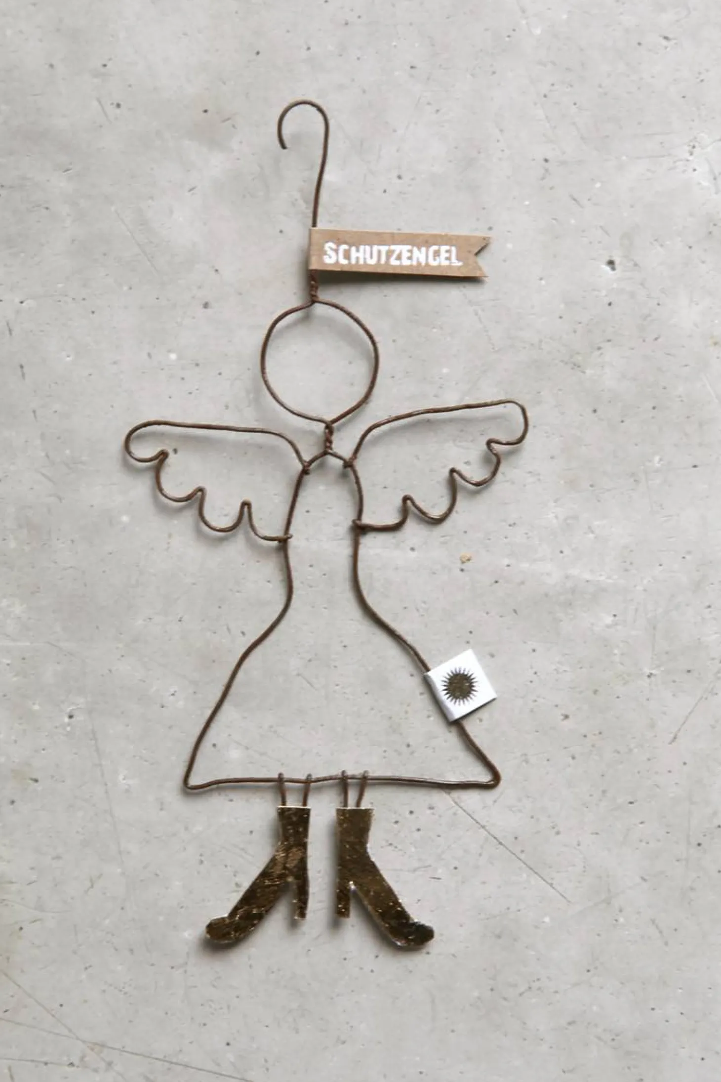 Ein Engel ist immer ein besonderes Geschenk und diese Schutzengel aus filigranem Draht tragen die schönsten Schuhe und immer eine liebevolle Botschaft. Der aus handgebogenem Draht gefertigte Engel ist mit seinen bunten Papierelementen mit viel Liebe zum Detail gefertigt worden. An dem kleinen Haken können Sie den Schutzengel beispielsweise an getrockneten Zweigen aufhängen. Verschenken Sie mit dieser netten Geste ein Stückchen Glück.