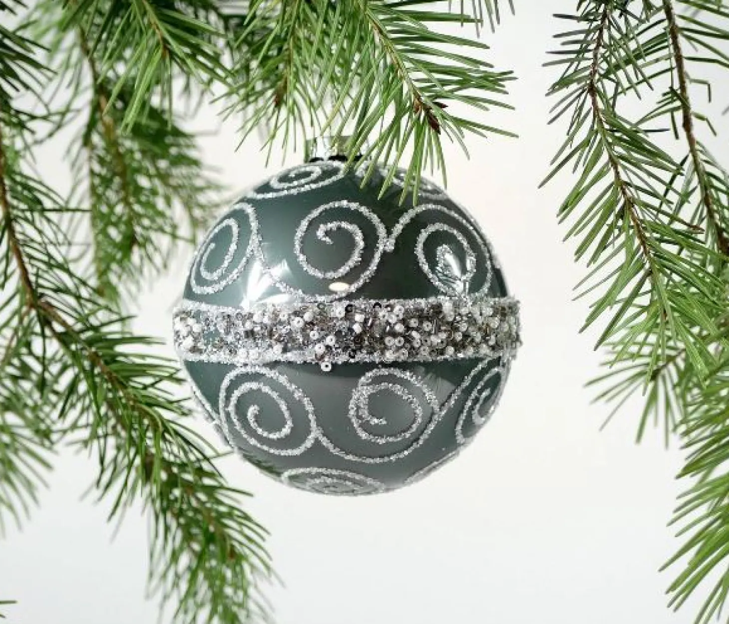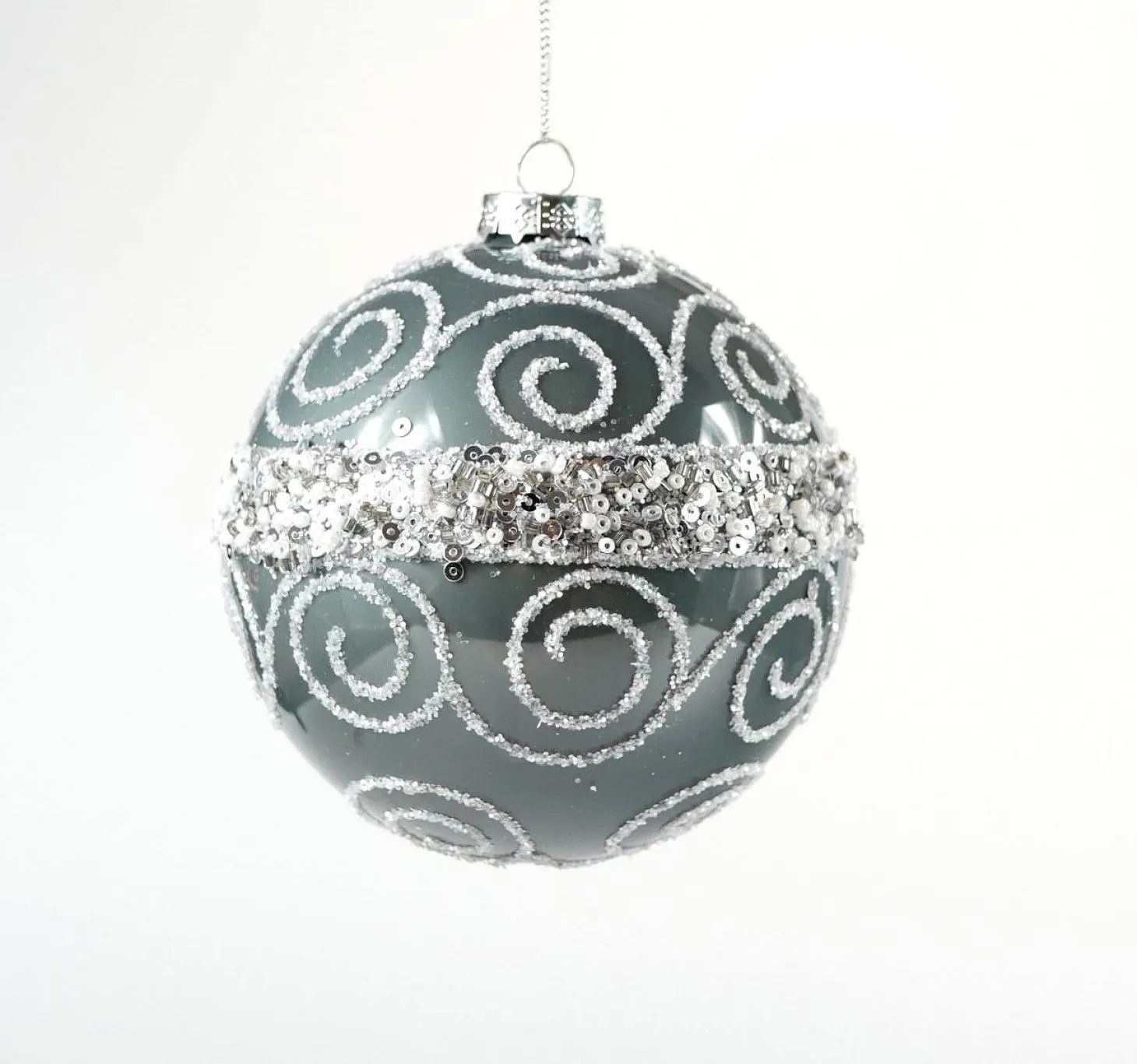 Produktinformationen „Glaskugel Ø 10 cm Grau Glitzer“