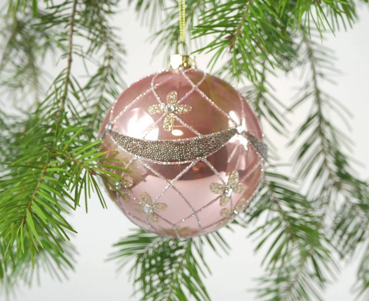 Produktinformationen „Glaskugel Ø 10 cm Rosa Glanz Blume“