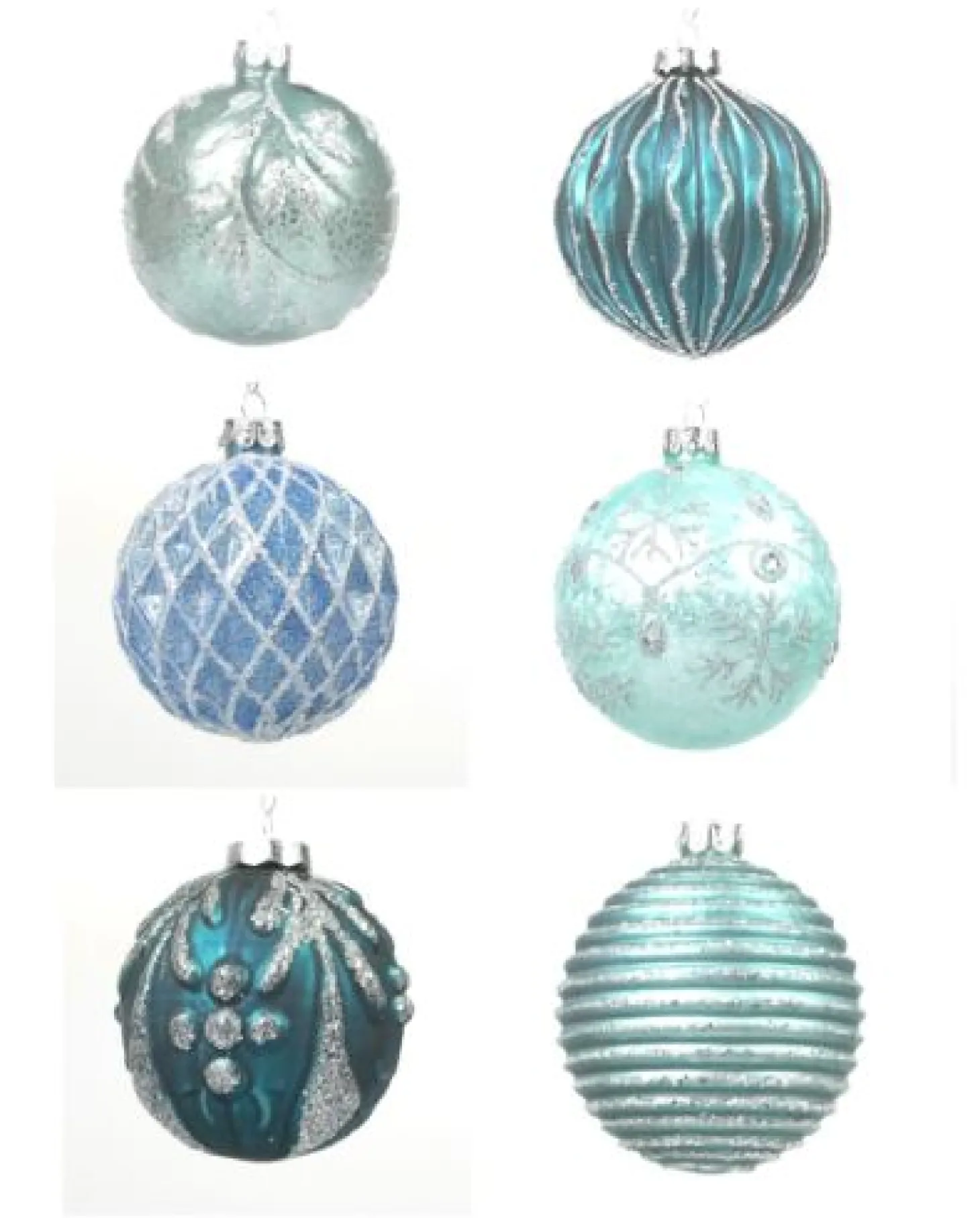 Die Glaskugel Ø 8 cm Blau ist ein hochwertiger Weihnachtsbaumschmuck. Die Christbaumkugeln werden in sechs verschiedenen Mustern in der Farben Blau, Türkis und Grün mit jeweils zwei Kugeln angeboten. Die Kugeln bestehen aus Glas und haben einen mattierten und glänzenden Farbeffekt mit silbernen Glitzer. Somit können Sie Ihren Weihnachtsbaum mit dem 12er-Set Blau kreativ dekorieren oder die Kugeln als Adventskranzschmuck verwenden.