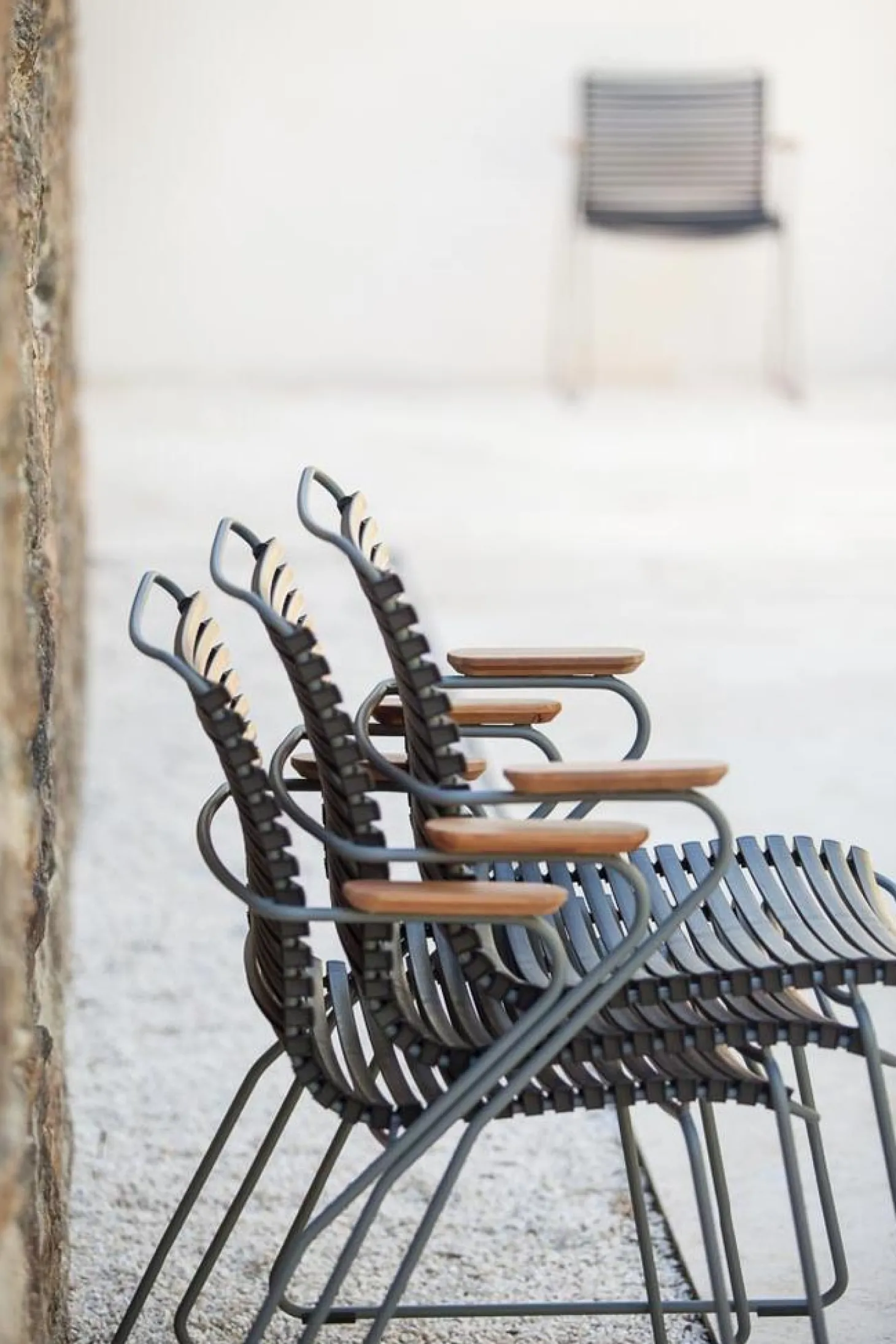 Dieses HOUE Click Stuhl Set verbindet hochwertige Materialien mit modernem Design. Pulverbeschichteter Stahl, UV-beständiger Kunststoff und natürliche Bambus-Armlehnen sorgen für Langlebigkeit und Eleganz. Die ergonomische Form und bequemen Armlehnen garantieren höchsten Sitzkomfort – perfekt für lange Abende mit Familie und Freunden.