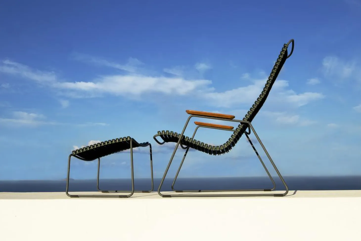 Das Beste holen Sie aus der Outdoor CLICK Fußablage von HOUE heraus, wenn Sie diese mit einem Terrassenstuhl der CLICK Reihe kombinieren, dazu gehören unter anderem der CLICK Gartenstuhl mit Armlehne, aber auch beispielsweise der Outdoor CLICK Lounge Stuhl. Das moderne Design und die zeitlosen Farben wird Ihre Gäste begeistern. Die Qualität der verwendeten Materialien ist hervorragend und Beweis für das einzigartige Preis-Leistungs-Verhältnis, das HOUE anbietet. Auch bei diesem Hocker können die Kunststofflamellen abgenommen werden und mit anderen diversen Farben kombiniert werden. Falls Sie später andere Lamellen einsetzen möchten, weil sie Ihren Stuhl farblich an ein Thema oder Farbkonzept anpassen möchten, können Sie diese auch einfach bei uns in einer anderen Farbe nachbestellen. Zum Schutz vor der Sonne und dem Bleichen der Farben, wurde auch hier, der erstklassige Kunststoff, Polypropylen mit UV-Stabilisatoren verwendet. Das verwendete, pulverbeschichtete Metall überzeugt, zum einen mit seinem modernen Design, zum anderen mit seinem Schutz vor Rost. Für besonders sicheren Halt sorgen die Gummipuffer am Gestell. Selbst bei Regen ist die Fußstütze so, gut geschützt. Zu empfehlen ist es jedoch, den Schemel im Winter nach drinnen zu holen, doch auch dort ist sie ein gutes Accessoire, kombiniert mit den anderen CLICK Balkonstühlen oder Gartenliegen. Suchen Sie jetzt in unserem Shop nach dem passenden Outdoor-Stuhl für Ihren Garten. Lassen Sie sich von dem einzigartigen Sitzkomfort begeistern, den die Serie CLICK bietet! Um die Lebensdauer Ihrer Stühle zu maximieren, empfehlen wir das passende Pflegeöl sowie unseren Reparatur-Lack und Ersatzlamellen für die CLICK-Serie.