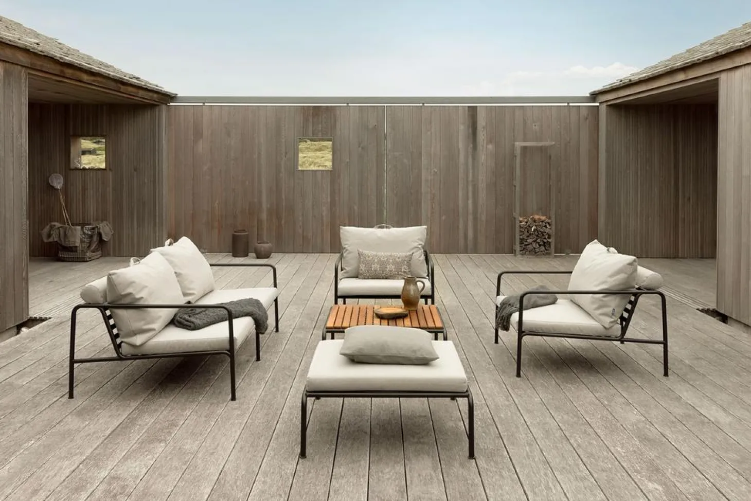 Der Outdoor Ottoman AVON von HOUE besteht aus einem schwarzen pulverbeschichtetem Stahlrohrgestell und Kissen aus dem Sunbrella-Heritage Stoff. Das Besondere bei den Kissen ist, dass diese wasserabweisend, schmutzabweisend, Oeko-tex zertifiziert und somit sehr pflegeleicht sind. Die Kombination zwischen dem leichten Aluminiumrahmen und den großen, weichen Kissen macht die AVON-Kollektion einzigartig. Ein weiterer Vorteil ist, dass die Kissen einen Griff besitzen, sodass Sie diese leicht greifen können und einfacher lagern können. Stellen Sie sich mit der AVON-Reihe eine gemütliche und einzigartige Lounge in Ihrem Garten zusammen und verbringen lange Sommertage mit Freunden. Sie können den Outdoor Ottoman AVON von HOUE als verlängerte Fußablage oder als Verlängerung für das Sofa verwenden. Bei uns im Shop erhalten Sie Ottoman in zwei verschiedenen Gestellfarben und 13 dazu passenden Polsterfarben.