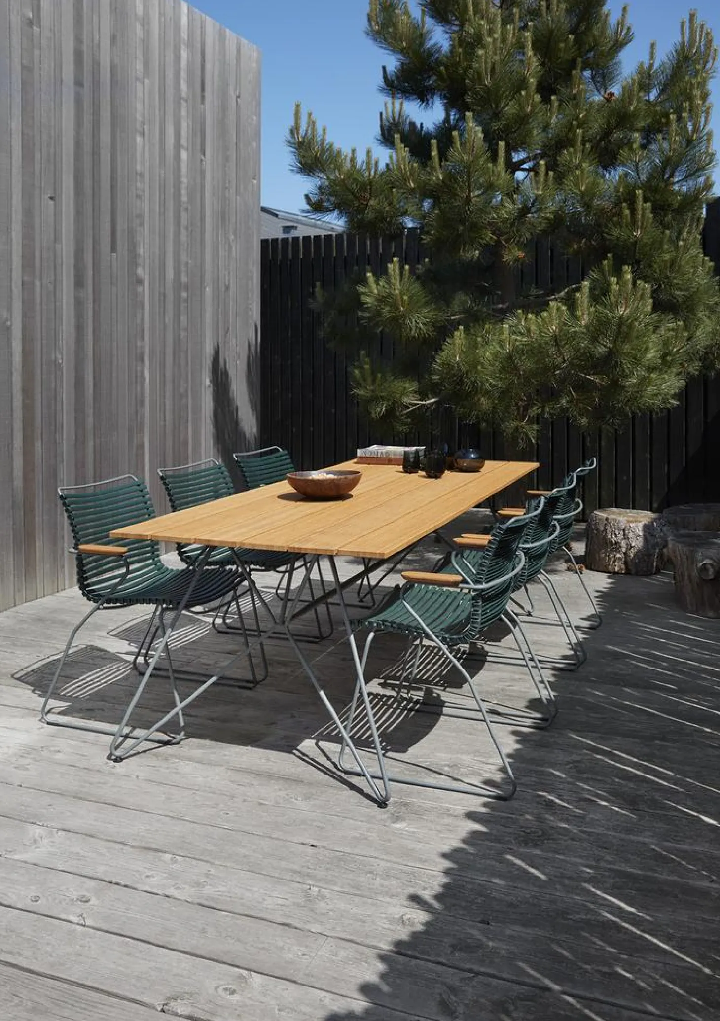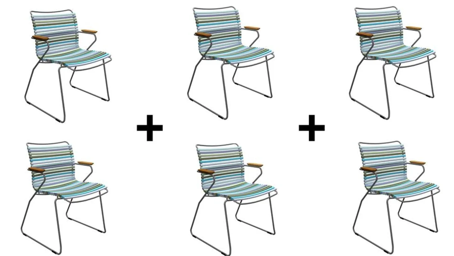 Verleihen Sie Ihrem Garten oder Ihrer Terrasse mit dem 6-teiligen Sparset der CLICK Stühle mit Armlehne von HOUE einen Hauch von Eleganz und Komfort zu einem reduzierten Preis! Diese Designerstühle sind aus hochwertigen, witterungsbeständigen Materialien gefertigt, darunter pulverbeschichteter Stahl, UV-beständiger Kunststoff und strapazierfähiger Bambus. Das Ergebnis ist ein stilvoller und langlebiger Stuhl, der jedem Außenbereich eine einladende Atmosphäre verleiht. Die bequemen Armlehnen und das ergonomische Design sorgen für höchsten Sitzkomfort, sodass Sie und Ihre Gäste stundenlang im Freien entspannen können. Mit dem 6-teiligen Sparset der CLICK Stühle von HOUE können Sie Ihrer Kreativität freien Lauf lassen. Das Set ist in 14 verschiedenen Farben erhältlich, sodass Sie die Stühle perfekt an Ihre bestehende Einrichtung anpassen oder spannende Farbakzente setzen können. Kombinieren Sie diese vielseitigen Stühle mit einem Tisch Ihrer Wahl und gestalten Sie so Ihren ganz individuellen Outdoor-Bereich. Egal, ob Sie einen modernen, minimalistischen Look oder einen lebhaften, bunten Stil bevorzugen – die CLICK Stühle bieten die Flexibilität, die Sie benötigen. Die CLICK Stühle von HOUE sind nicht nur optisch ansprechend, sondern auch extrem robust und langlebig. Die pulverbeschichteten Stahlrahmen sind rostbeständig und halten auch widrigsten Wetterbedingungen stand. Der UV-beständige Kunststoff behält auch bei intensiver Sonneneinstrahlung seine Farbe und Struktur, während die Bambuselemente für ihre natürliche Widerstandsfähigkeit und Nachhaltigkeit bekannt sind. Mit diesen Stühlen investieren Sie in Qualität und Langlebigkeit, die Ihnen viele Jahre Freude bereiten werden. Um die Lebensdauer Ihrer Stühle zu maximieren, empfehlen wir das passende Pflegeöl sowie unseren Reparatur-Lack und Ersatzlamellen für die CLICK-Serie.