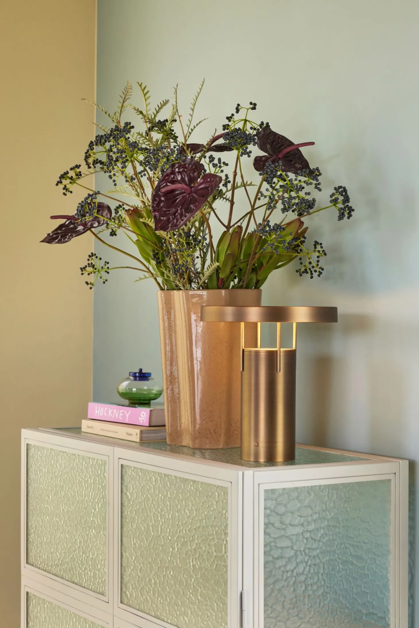 Tauchen Sie ein in die Welt von Hübsch mit der wiederaufladbaren Tischlampe „BringMe“ aus brüniertem Messing. Diese elegante Leuchte vereint klassisches Design mit moderner Technologie und ist sowohl für den Innen- als auch den Außenbereich geeignet.