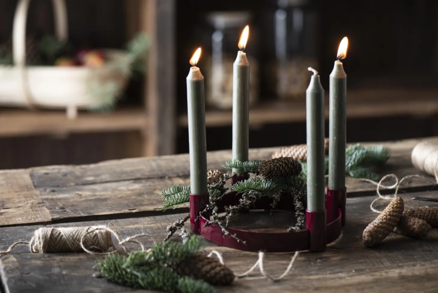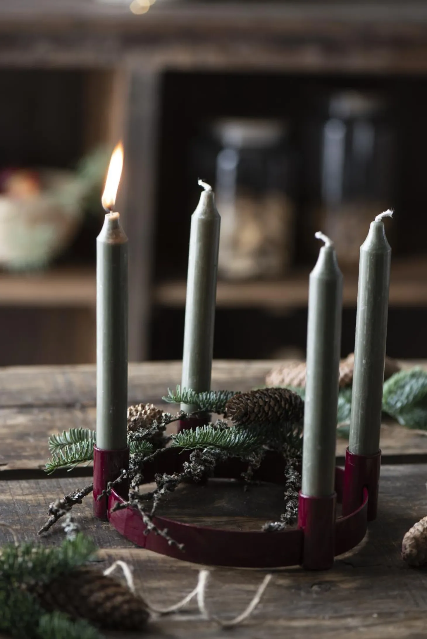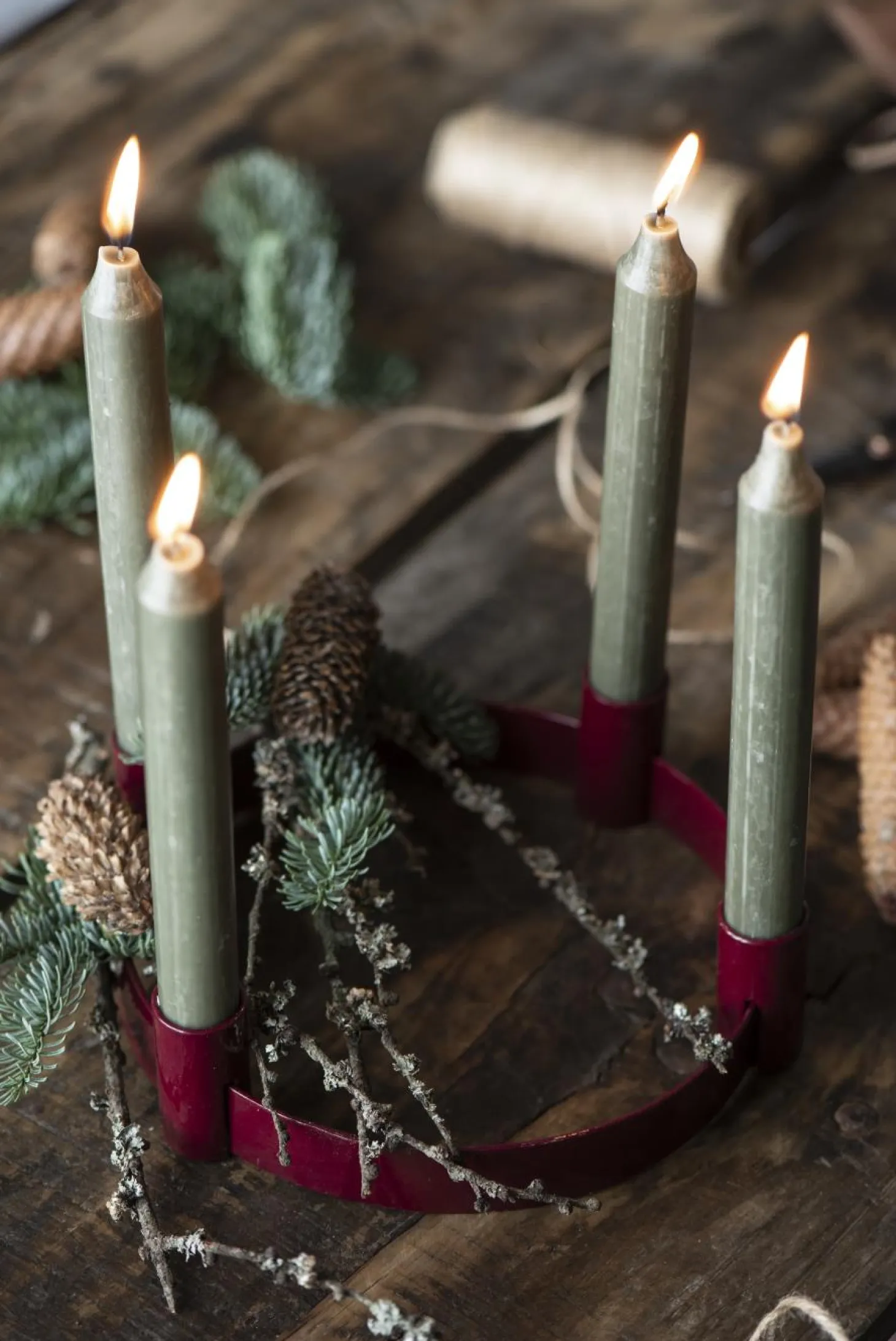 Der Adventkerzenhalter f/4 Stabkerzen verschiebbare Halter von IB Laursen aus Metall überzeugt durch eine hochwertige Verarbeitung. Der Halter sieht dazu auch schick und modern aus und passt in jede Einrichtung. Verwenden Sie den Adventkerzenhalter f/4 Stabkerzen an den festlichen Tagen als Adventskranz und platzieren Sie diesen auf Ihrem Esszimmer- oder Wohnzimmertisch. Gerne können den Kerzenhalter von IB Laursen auch mit anderen Accessoires wie zum Beispiel Moos verzieren. Erhältlich ist hochwertige Advensthalter in der Farbe rot oder Olive.