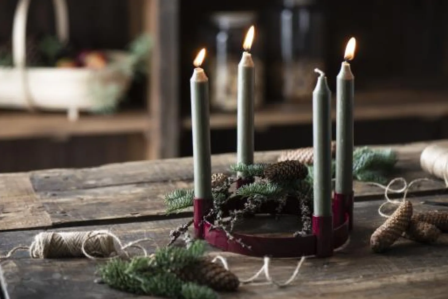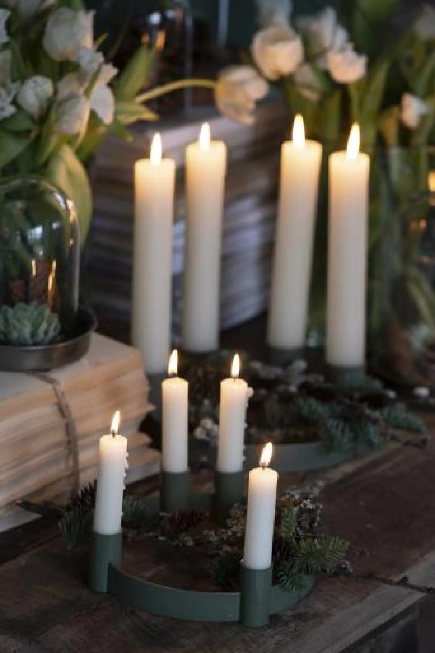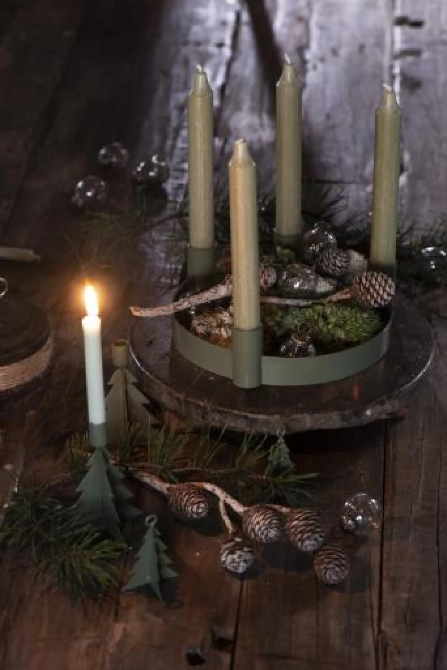 Der Adventkerzenhalter f/4 Stabkerzen verschiebbare Halter von IB Laursen aus Metall überzeugt durch eine hochwertige Verarbeitung. Der Halter sieht dazu auch schick und modern aus und passt in jede Einrichtung. Verwenden Sie den Adventkerzenhalter f/4 Stabkerzen an den festlichen Tagen als Adventskranz und platzieren Sie diesen auf Ihrem Esszimmer- oder Wohnzimmertisch. Gerne können den Kerzenhalter von IB Laursen auch mit anderen Accessoires wie zum Beispiel Moos verzieren. Erhältlich ist hochwertige Advensthalter in der Farbe rot oder Olive.