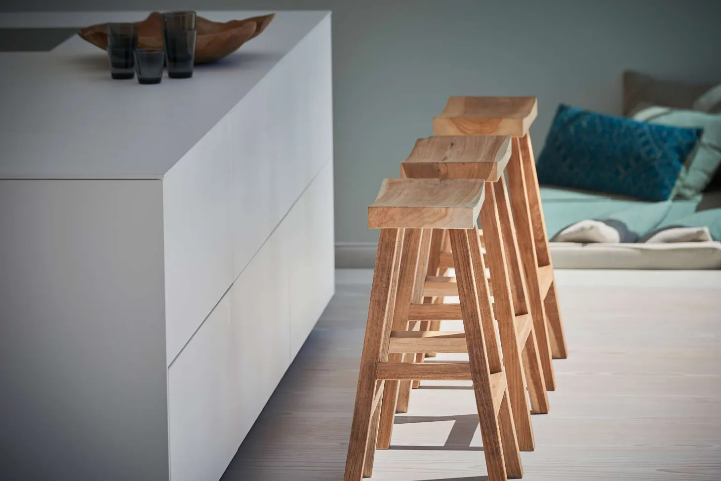 Mit dem Barhocker Curve aus Teakholz holen sie sich ein Unikat zu sich nach Hause. Der Hocker ist ganz aus Teak massiv gefertigt und somit ein wunderschönes Naturprodukt. Er kann vielseitig kombiniert werden, je nachdem was Ihre persönlichen Vorliebe sind. Zum absoluten Highlight wird er beispielsweise in einem modernen Essbereich mit einer Hochglanzküche, da der Teakstuhl hier besonders zum Vorschein kommt. Aber auch wenn Sie bereits zahlreiche Möbel aus Holz zu Hause haben, passt der Barhocker aus Teakholz perfekt zu Ihnen. Den aus dem massiven Teak bestehenden Barhocker gibt es in zwei Größen, sodass er auch in Ihre Küche passt.