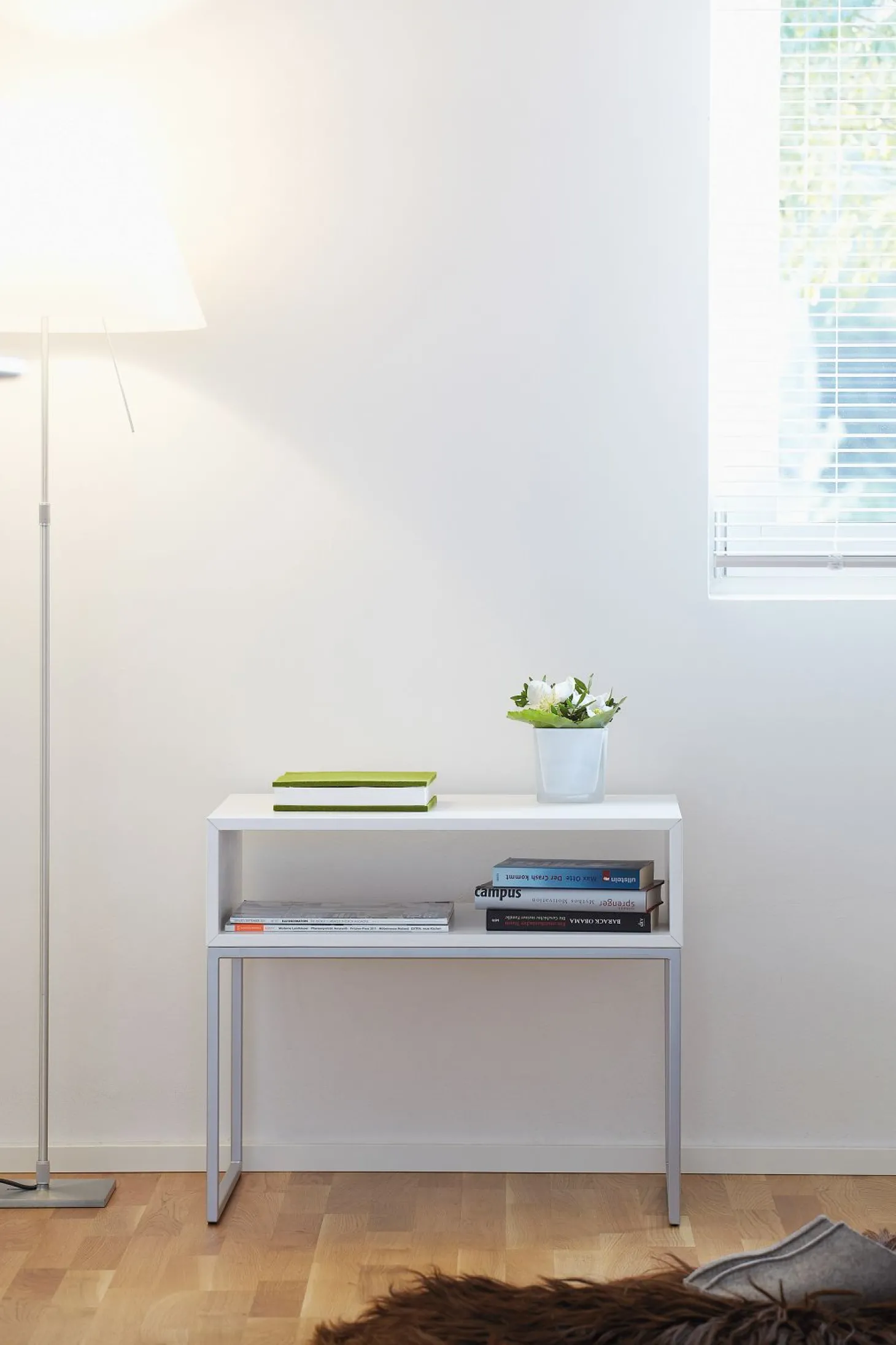 Produktinformationen „Beistelltisch Dina Rechteckig Tablett Weiß / Gestell Lunasilber“