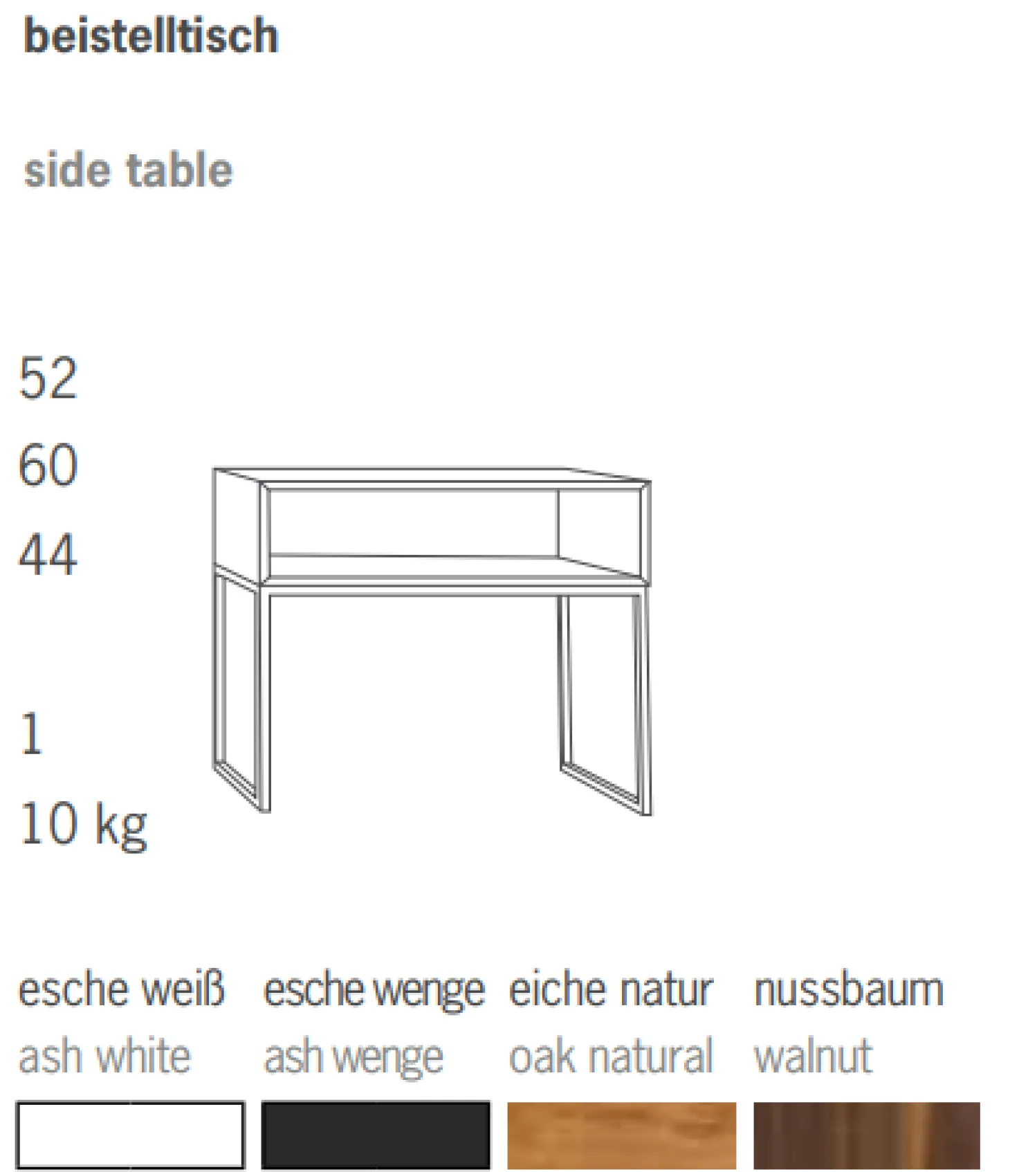 | Weiß | Mittelteil Eschefurnier weiß lackiert, Umrandung Esche massiv weiß lackiert |