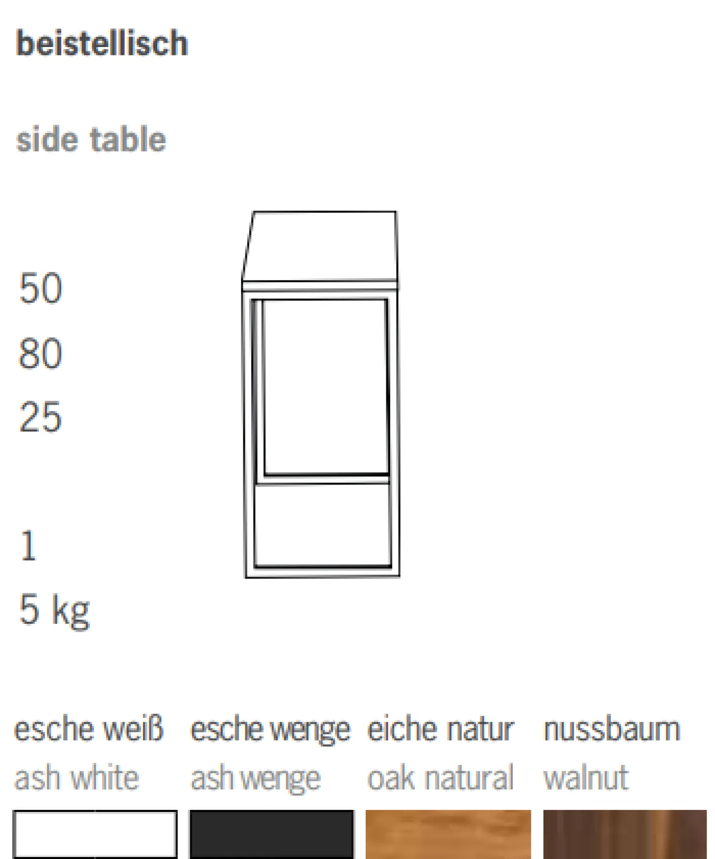 | Weiß | Mittelteil Eschefurnier weiß lackiert, Umrandung Esche massiv weiß lackiert |