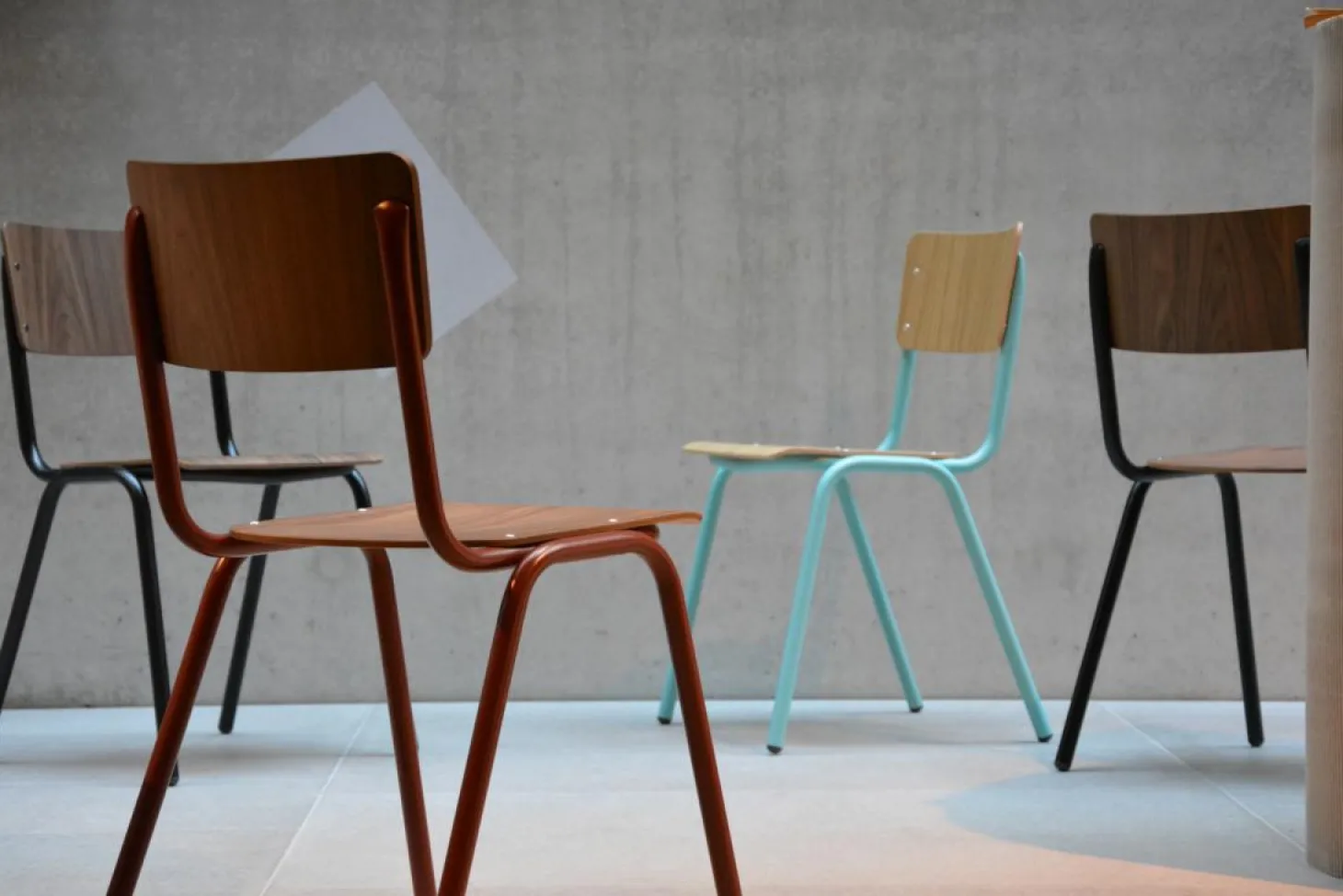 Der Stuhl Zero von Jan Kurtz ist ein schlichter und eleganter Stuhl für Ihre hochwertigen Büro- oder Schulungsräume. Aber auch als moderne Sitzgelegenheit in Ihrer Küche oder am Esstisch macht der aus den 1950er nachempfunden Stuhl optisch was her, die unlackierten Nieten runden das Retro Design der verschieden farbigen Stühle ab.