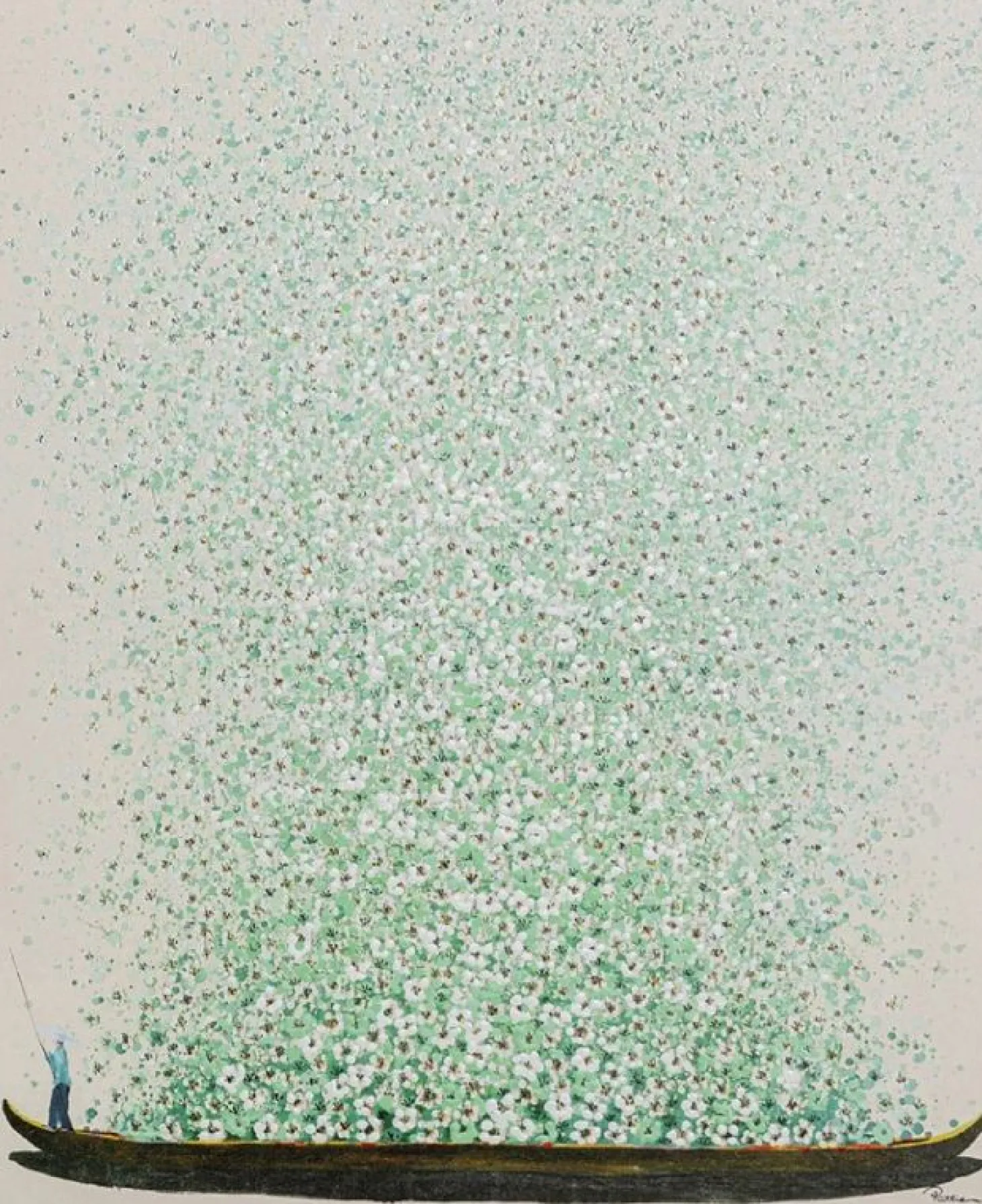 Produktinformationen „Bild – Touched Flower Boat Beige Grün 80×100 cm“