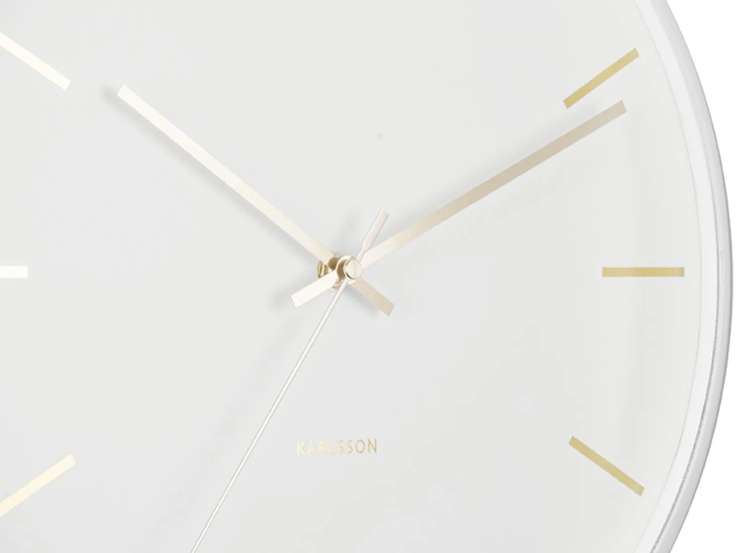 Sie suchen nach einem eleganten, hochwertigen Zeitmesser für Ihr Zuhause? Dann ist die Wanduhr – Globe weiß Ø 40 cm von Karlsson genau das Richtige für Sie! Diese schicke Wanduhr verleiht jedem Raum mit ihrem stilvollen, zeitlosen Design sofortige Eleganz. Die Wanduhr verfügt über ein warmes, goldenes Zifferblatt und goldene Zeiger, die einen farblichen Akzent zur weißen Farbe setzen und alle Details hervorheben. Die Kombination aus Weiß und Gold sieht sehr schickes aus und bringt willkommene Helligkeit in jeden tristen Raum. Das raffinierte Design der Uhr verleiht ihr einen einzigartigen Touch wie keine andere Uhr. Die Wanduhr in Weiß sieht aber nicht nur schön aus, sondern zeigt Ihnen auch zuverlässig die Zeit an.