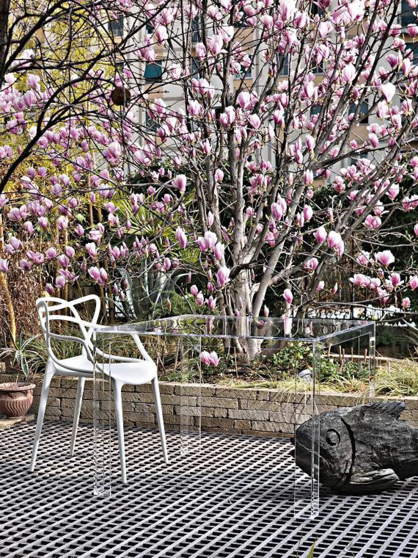 Masters von Kartell ist ein besonders, hochwertiger designter In- oder Outdoorstuhl. Das geschwungene Design ist modern und passt sich jedem Einrichtungsstil in Ihrem Zuhause oder auch Ihrem Garten an. Der Stuhl mit Armlehnen hat eine Höhe von 83 cm, eine Breite von 53,5 cm und wiegt 4 kg. Das Material ist umweltfreundlich, da es recyceltes thermoplastisches Technopolymer mit mineralischen Zuschlagstoffen und Soft Touch-Behandlung ist. Der Gartenstuhl von Kartell überzeugt jeden von seinem ausgefallenem und hochwertigem Design. Verwenden Sie den Stuhl oder die Stühle mit einem passenden Tisch als Gartenmöbel oder Esszimmerstühle. Erhältlich ist der bequeme In- und Outdoorstuhl in den Farben schwarz oder weiß.