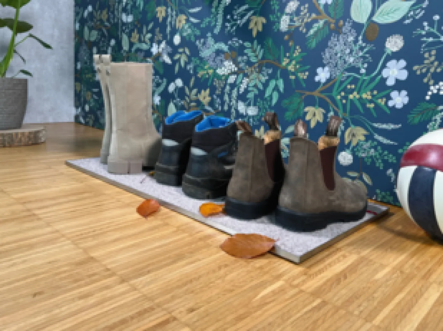 Die Schuhwanne Perfetto ist mit einer hochwertigen Matte ausgekleidet, die überschüssige Feuchtigkeit und Schmutz von Ihren Schuhen aufnimmt. An der Unterseite sorgen sechs Gummipuffer dafür, dass die Wanne an ihrem Platz bleibt, egal wie viel los ist. Noch nie war es so einfach, im Flur für Ordnung zu sorgen! Mit dieser eleganten und modernen Schuhwanne von Keilbach können Sie nichts falsch machen. Worauf warten Sie also noch?