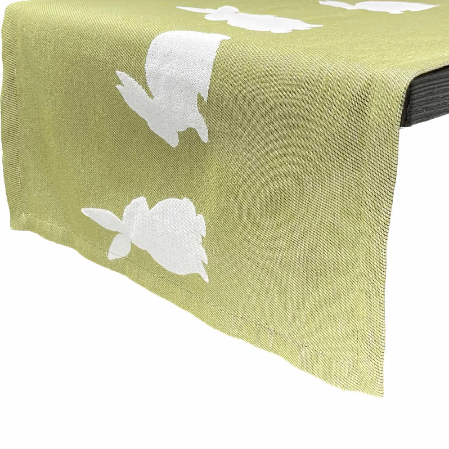 Verleihen Sie Ihrem Tisch einen charmanten Akzent mit dem Tischläufer „Solange“ von LAZIS. Dieser stilvolle Tischläufer misst 47×135 cm und besticht durch sein gewebtes Hasenmotiv, das eine einladende Atmosphäre schafft.