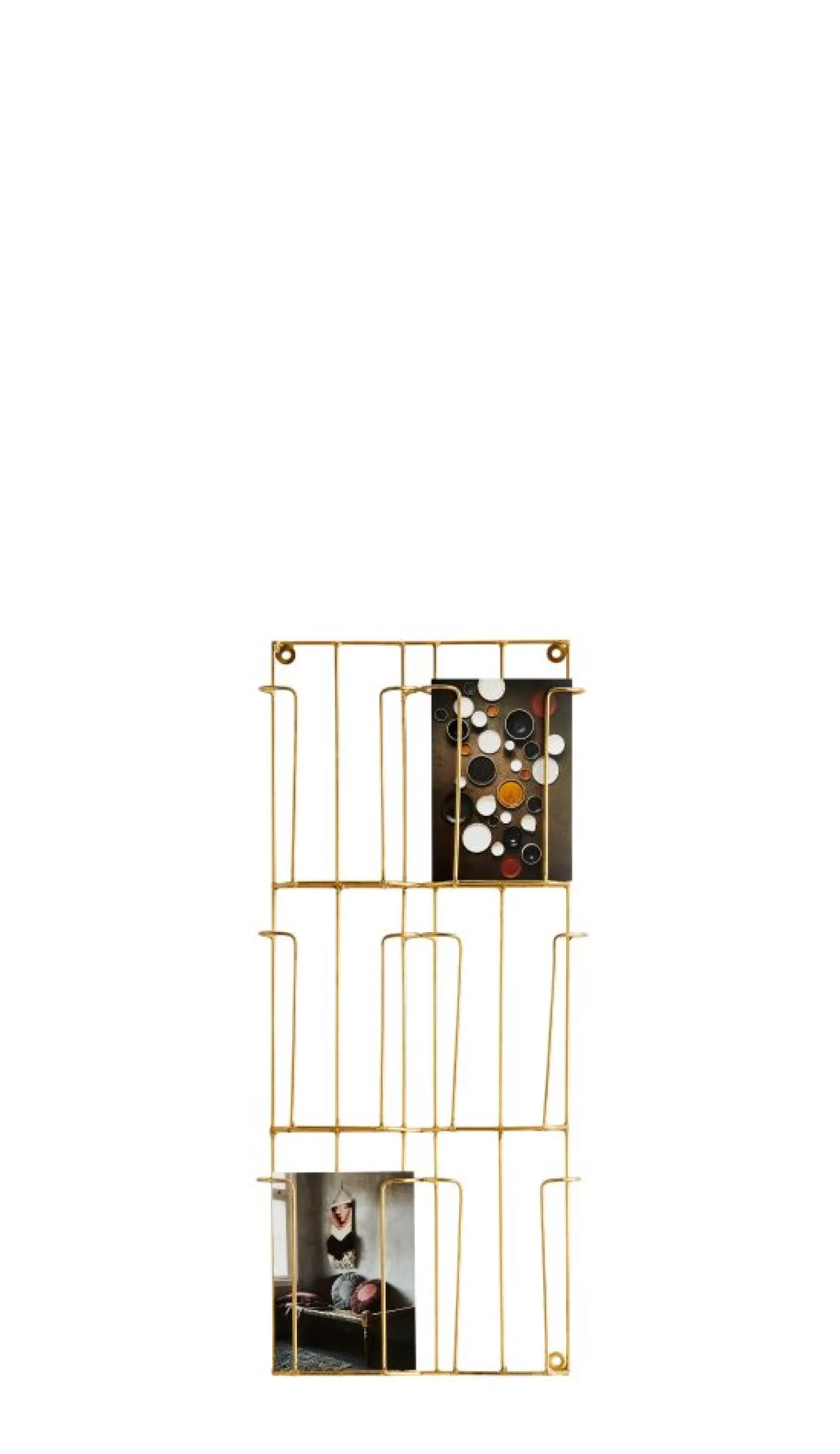 Der goldene Kartenhalter von Madam Stoltz ist eine stilvolle und praktische Lösung, um Ihre Lieblingskarten oder Postkarten elegant zu präsentieren. Aus robustem Eisen gefertigt und in einem edlen Goldton gehalten, bringt dieser Wandhalter nicht nur Funktionalität, sondern auch einen Hauch von Glamour in Ihr Zuhause.