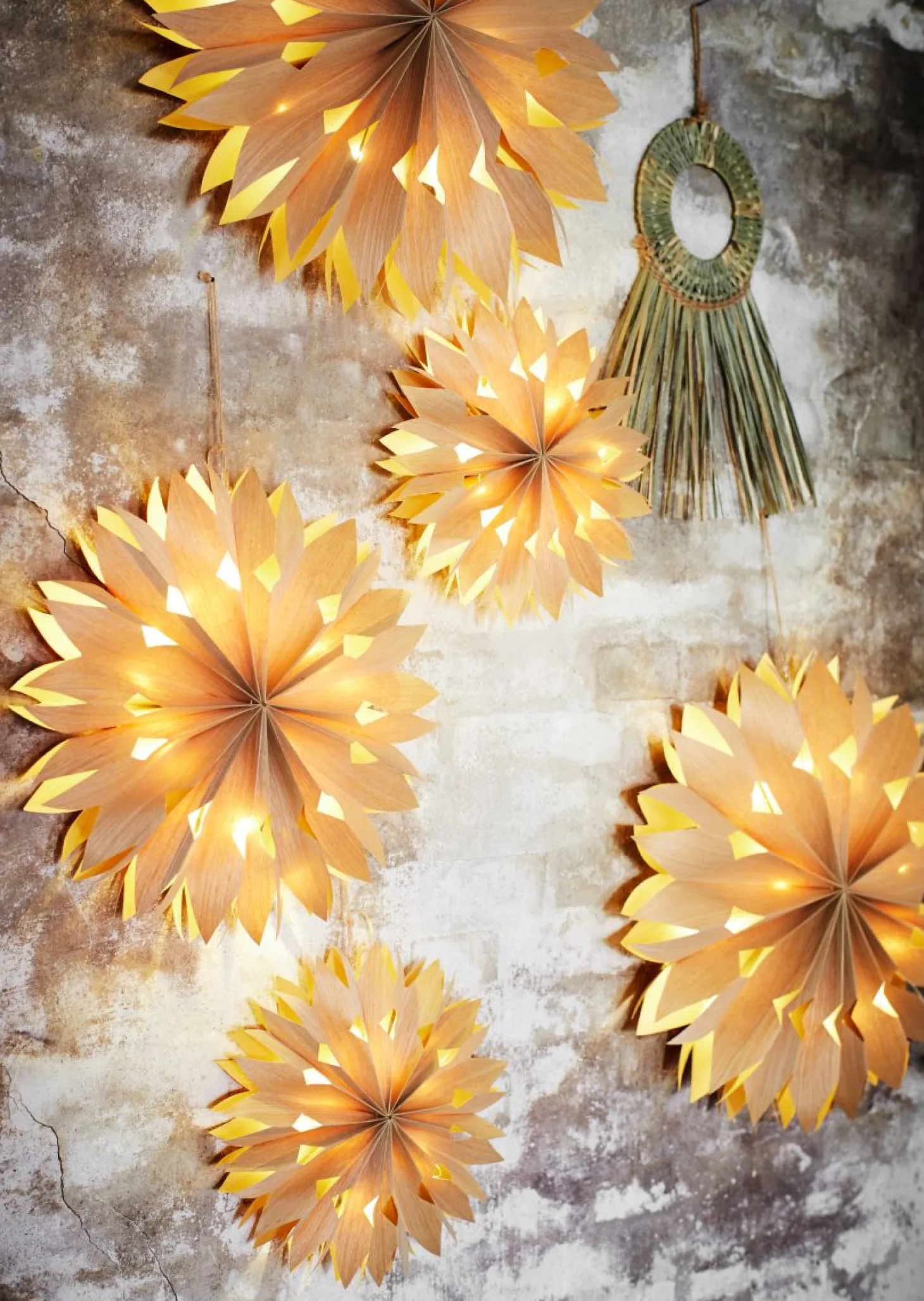 | Material: | Drahtleuchten, Furnierpapier |