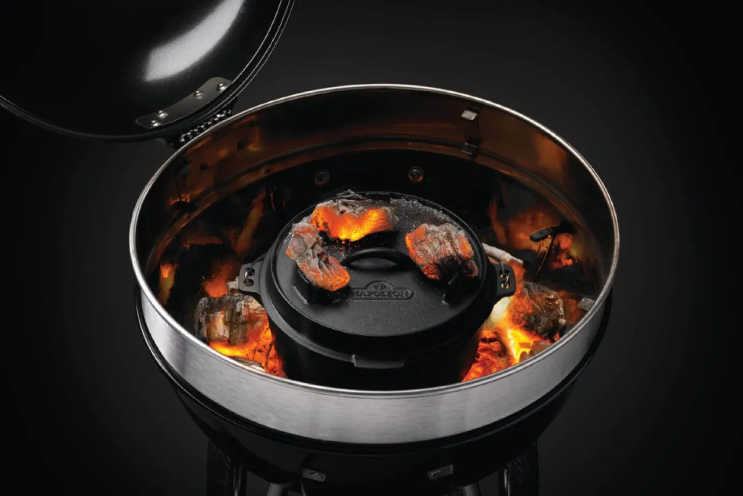 | Besonderheit: | Benötigte Luftzufuhr beim Grillen auf Holzkohle dank integrierter Füße, Deckel auch als Pfanne verwendbar |