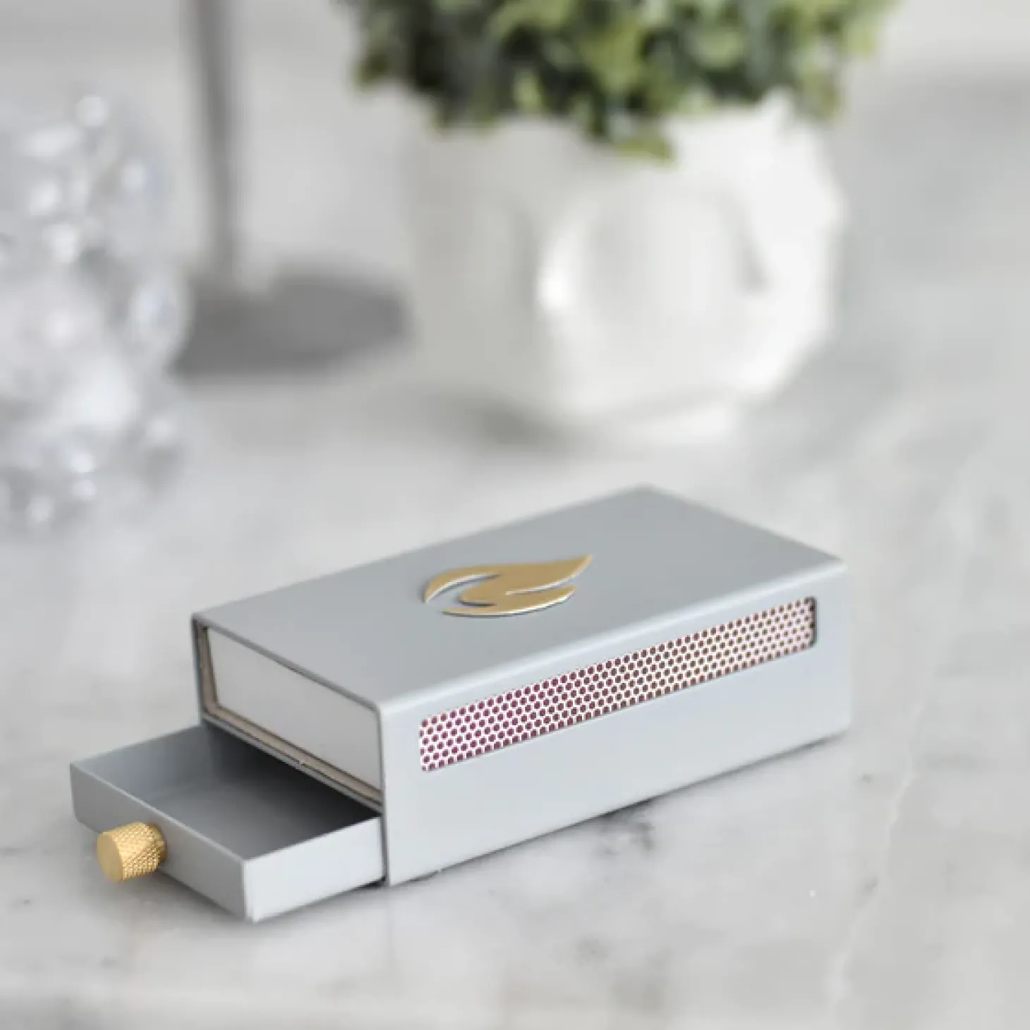 Lassen Sie Nordic Flame Ihre Fantasie mit dieser eleganten Streichholzschachtelabdeckung Grau beflügeln! Zeigen Sie einen Hauch von Raffinesse mit seiner pulverbeschichteten, mattgrauen Oberfläche und den Messingakzenten. Diese Streichholz-Schachtel Hülle wurde so gestaltet, dass sie beeindruckt und jedem Zuhause einen Hauch von Klasse verleiht. Ästhetisch ansprechend und praktisch zugleich, bewahrt dieses einzigartige Stück bis zu 50 lange Streichhölzer sicher und bequem auf und schützt sie. Ca. 50 lange Streichhölzer sind im Lieferumfang enthalten. Und da sich der Deckel von beiden Seiten öffnen lässt, müssen Sie nicht mehr umständlich nach einem Licht suchen – schieben Sie ihn einfach auf und los geht’s!