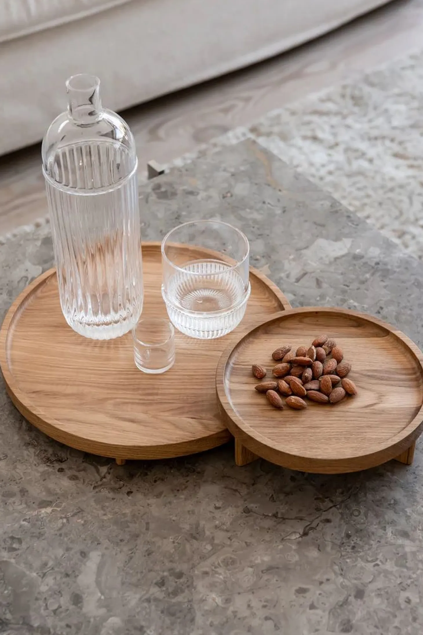 Das Elevate Holztablett mit Füßchen von Novoform ist ein funktionales Tablett, das Ihrem Raum Wärme und Textur verleiht. Es ist in zwei Varianten erhältlich: in natürlicher Eiche und in schwarz gebeizter Eiche, sodass es sich gut in verschiedene Einrichtungsstile einfügt.