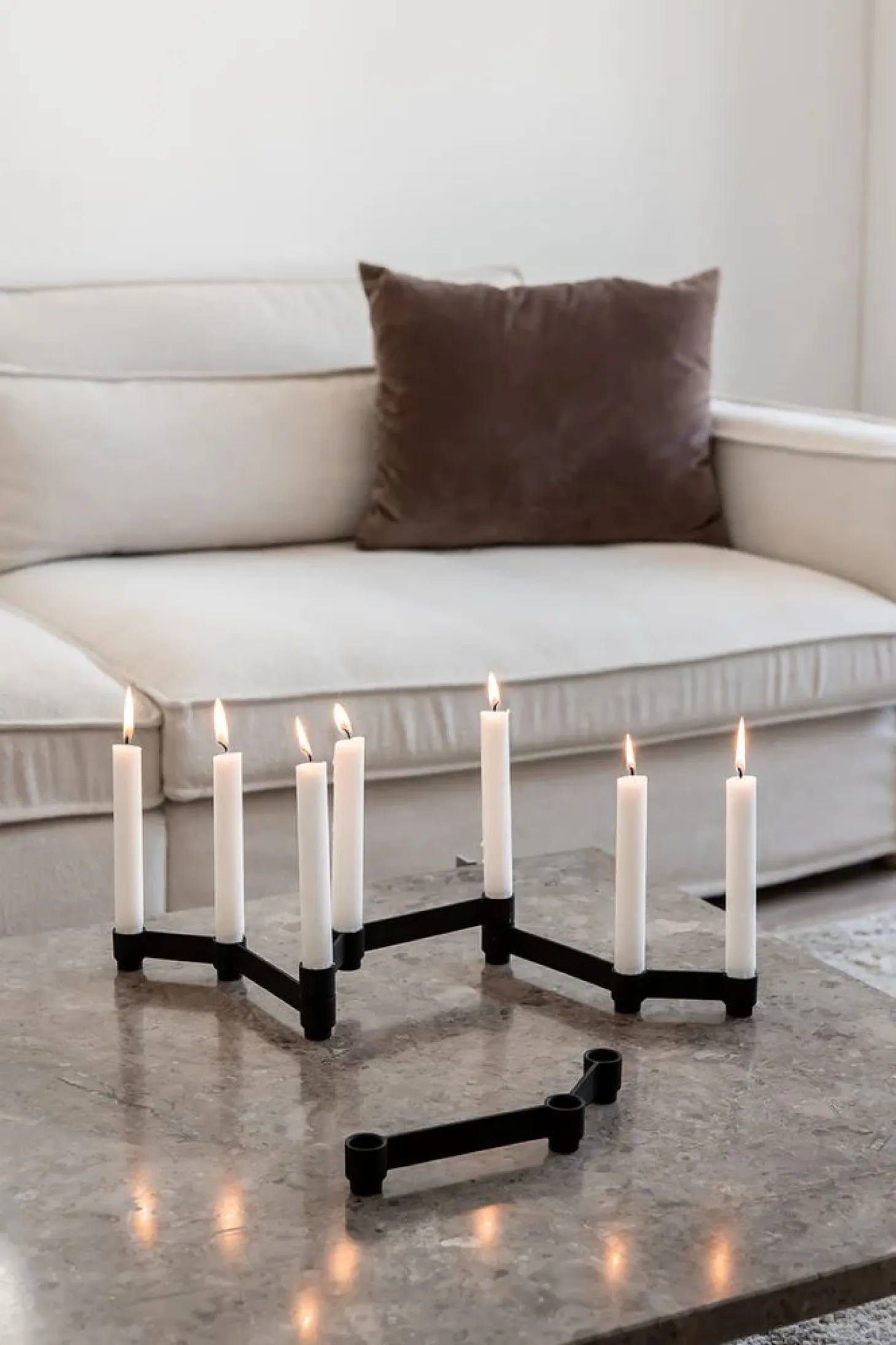 Jedes einzelne Sero-Modul ist so gestaltet, dass es bis zu drei Kerzen oder zusätzlich bis zu drei weitere Module aufnehmen kann, sodass Sie Ihre Dekoration ganz individuell anpassen können. Diese modulare Vielseitigkeit ermöglicht es, den Kerzenhalter je nach Anlass, Stimmung oder Raumgröße immer wieder neu zu gestalten und zu erweitern.