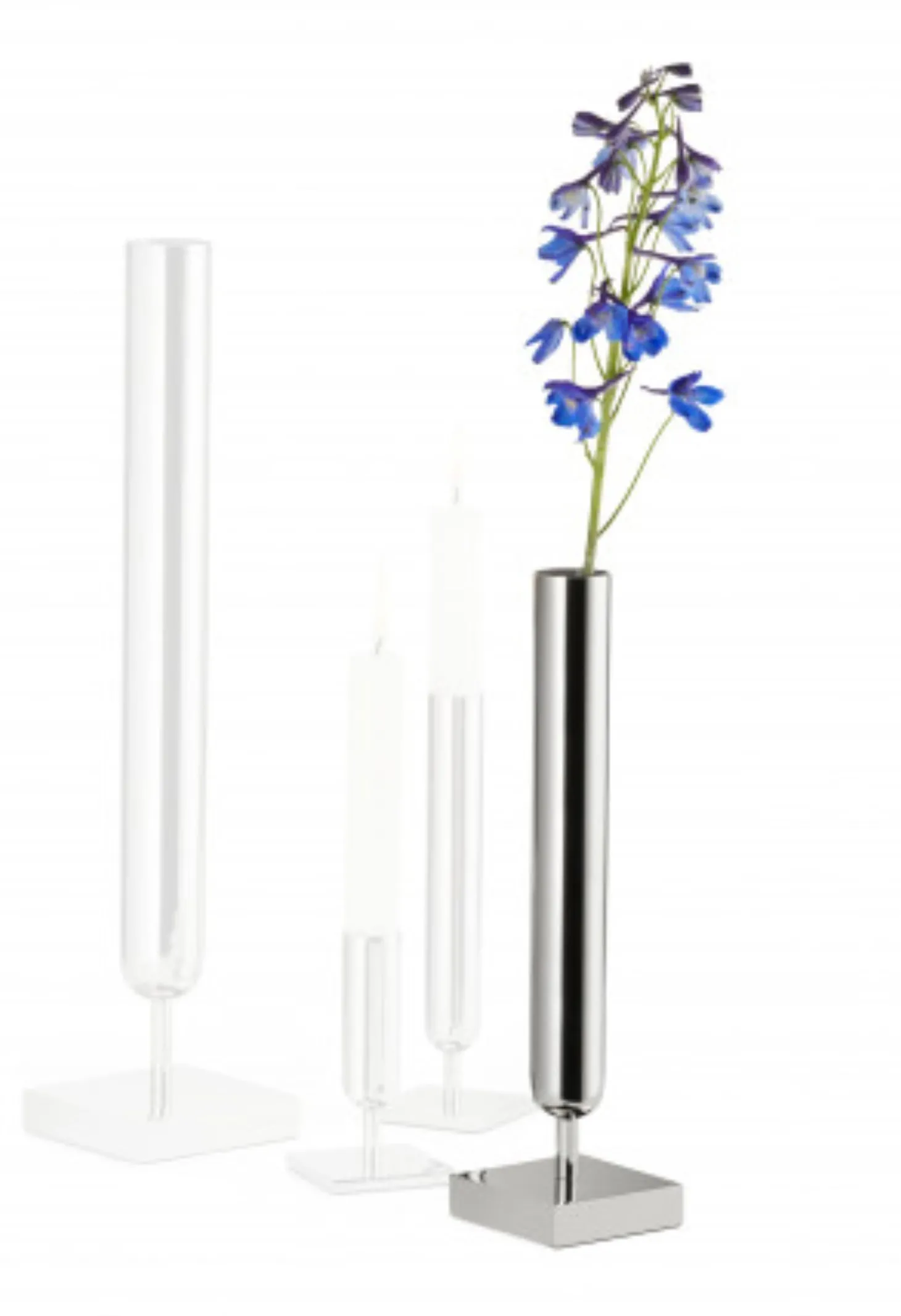 Das minimalistische Design von Mike Ruch setzt bewusst auf klare Formen: Die schmaleren LAMBDA-Leuchter sind für Stabkerzen gedacht, während die Vasen etwas mehr Volumen für Wasser und Blüten bieten. Besonders Anhänger des Purismus schätzen die Wirkung einzelner Blüten oder Zweige, die in diesen Gefäßen stilvoll zur Geltung kommen. Ob Hochzeit, Geburtstag, Konfirmation oder festliche Feiertage – LAMBDA ist immer ein Highlight, sei es auf der Tafel, der Fensterbank oder dem Kaminsims.