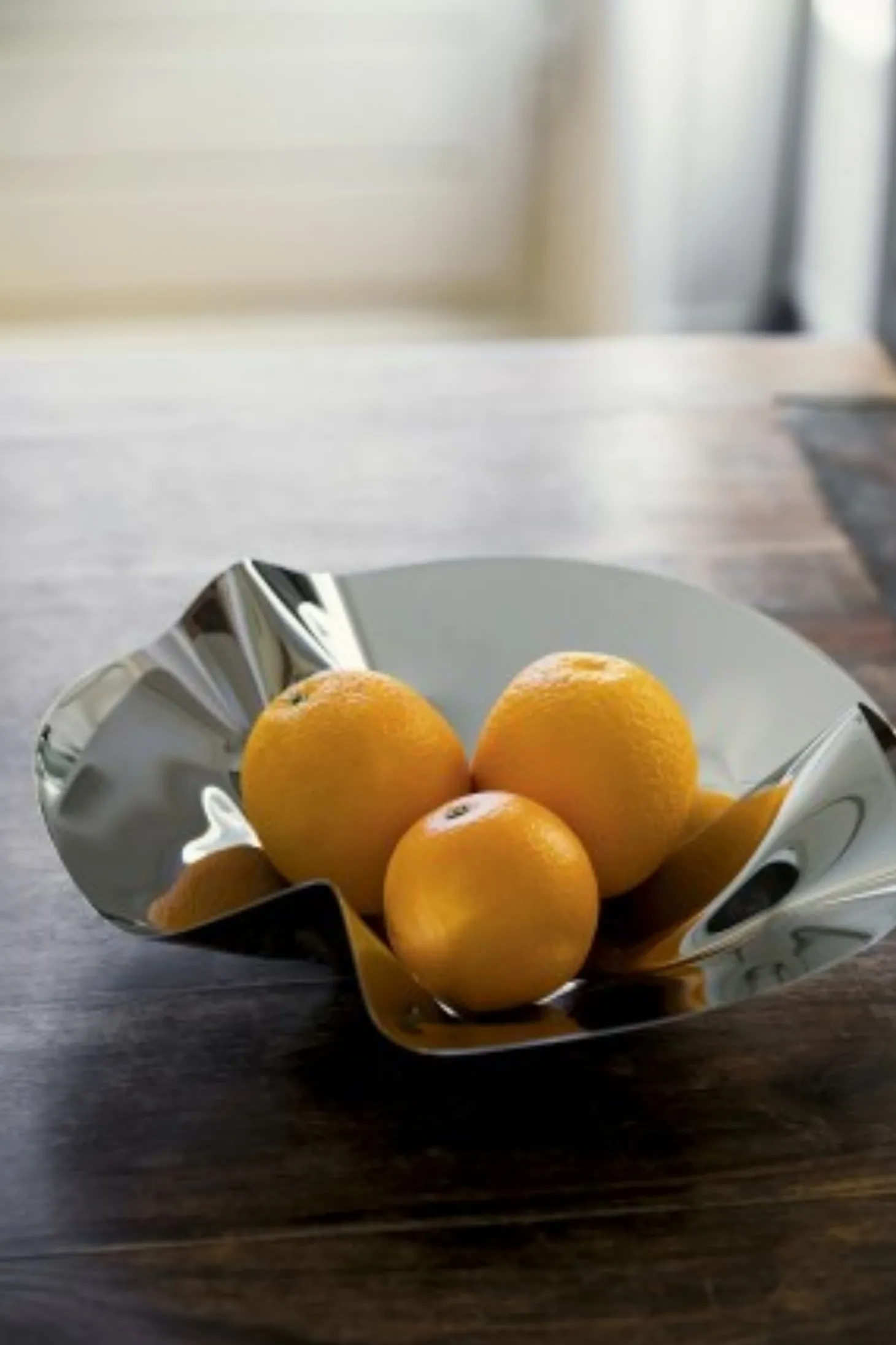 Die MARGARETHE Schale von Philippi vereint elegante Formgebung mit funktionaler Schönheit. Ob Mango, Kiwi, Lychee oder Pitaya – in dieser stilvollen Schale kommen die Früchte der Welt perfekt zur Geltung. Ihr silbern glänzendes Antlitz sorgt schon leer für einen modernen Blickfang, befüllt entfaltet sie ihren vollen Charme und lädt zu süßen Gaumenfreuden ein.