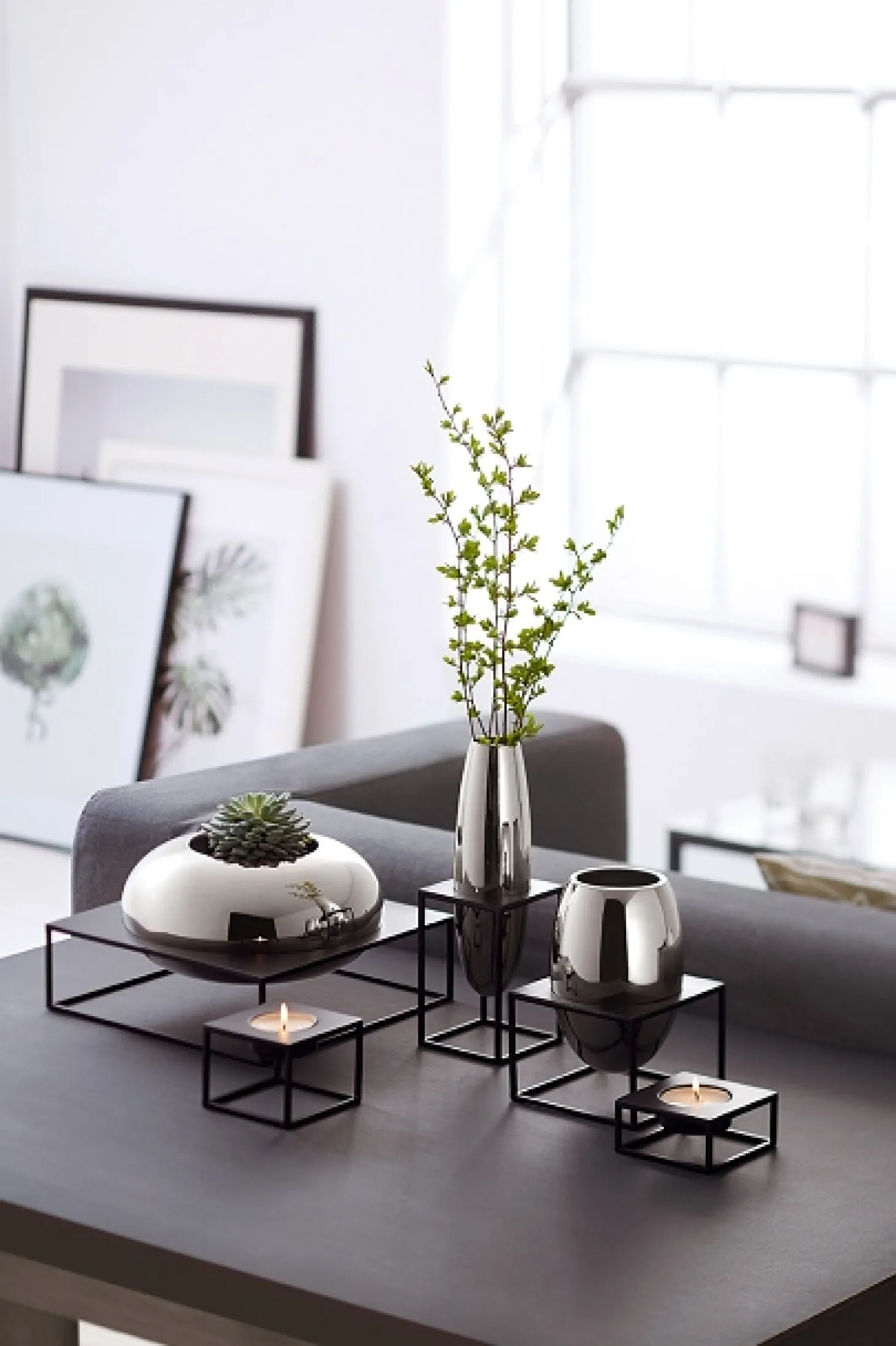 Mit dem Solero Teelichthalter von Philippi sieht es aus, als würde das Teelicht in der Luft schweben. Das aus pulverbeschichtetem schwarzen Stahl geformte Gestell ist ein zeitloses Wohnaccessoire, welches sich mit zahlreicher Deko, passend zur entsprechenden Jahreszeit kombinieren lässt. Das Gestell ist für Maxi-Teelichter mit einem Durchmesser von bis zu 6 cm geeignet. Kombinieren Sie beide erhältlichen Größen miteinander, um ein stimmiges Gesamtbild zu erhalten. Weiterhin erhalten Sie aus dieser Serie auch extravagante Vasen.
