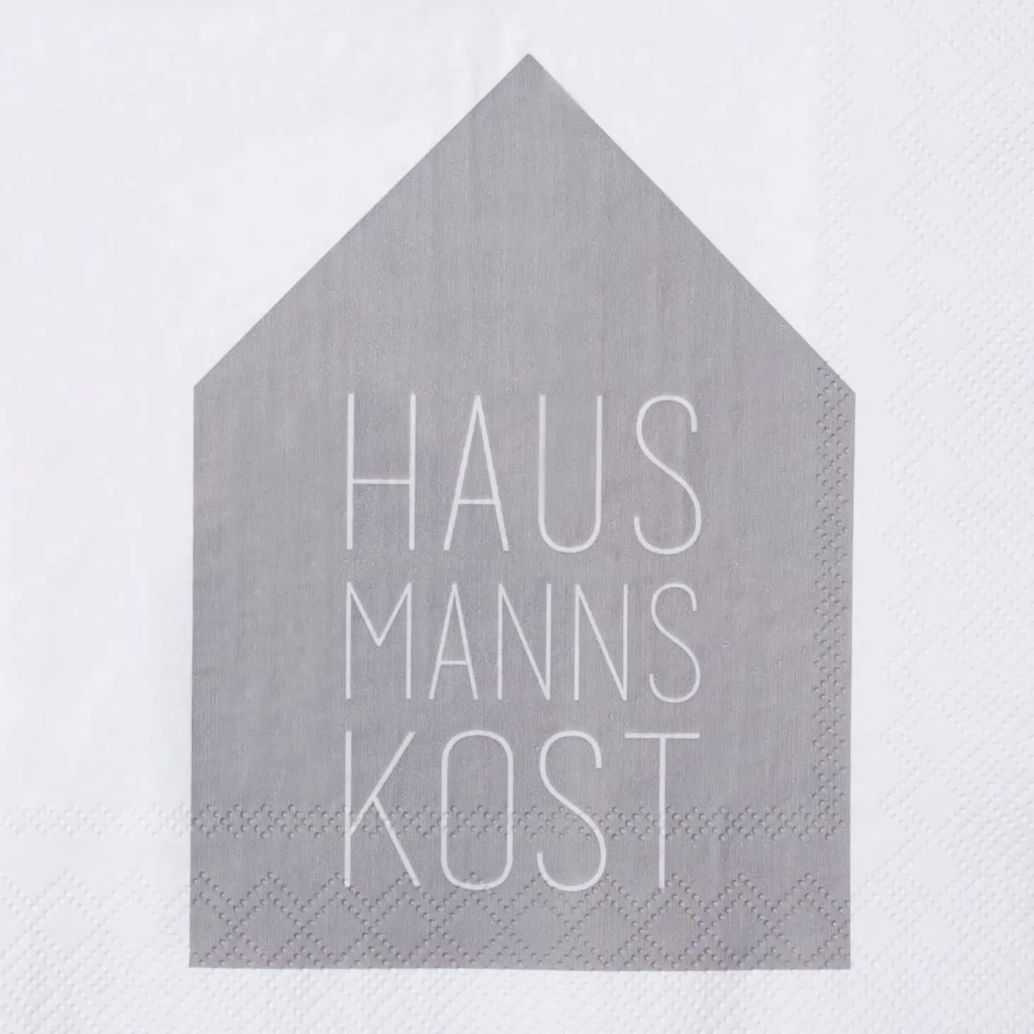 Laden Sie Freunde zum Essen ein und sorgen Sie mit der Serviette „Hausmannskost“ 33×33 cm von Räder für ein tolles Ambiente auf Ihrem gedeckten Tisch. Der schöne Hintergrund, die stilvolle weiße Schrift und das aufgedruckte Hausmotiv machen sie zu einem unübersehbaren optischen Element.