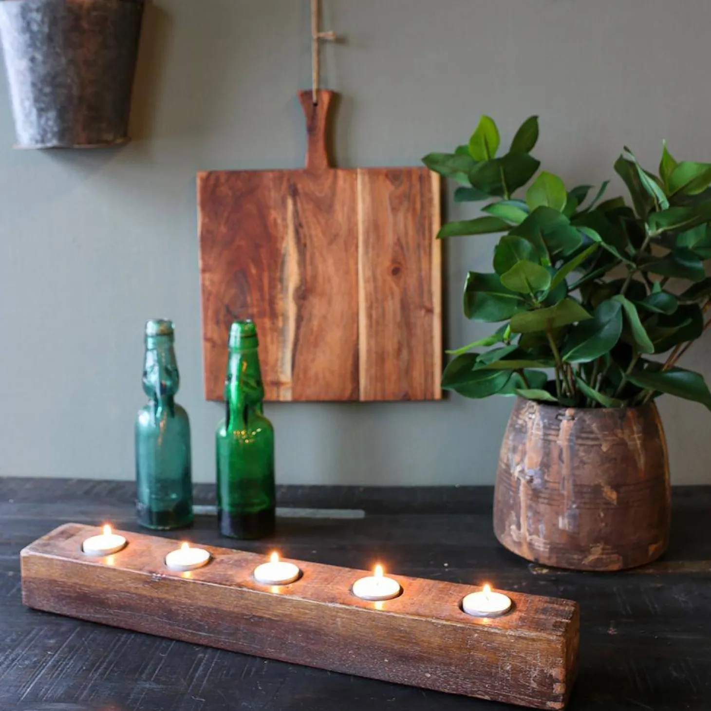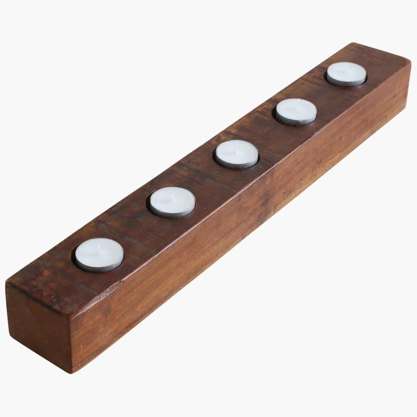 Der Teelichthalter – Antique 50 × 7 × 6 cm von Raw Materials bietet einen schönen dekorativen Teelichthalter aus Holz.