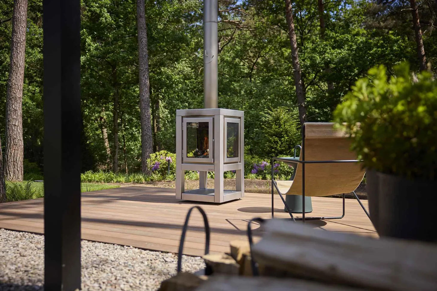 Der RB73 Quaruba Außenkamin Edelstahl matt ist die elegante Variante innerhalb der Quaruba-Serie. Hergestellt aus 3 mm Edelstahl und perlgestrahlt, erhält er seine charakteristische matte Oberfläche. Dieses Finish wirkt modern, zeitlos und verleiht dem Kamin einen besonders hochwertigen Look, der sich perfekt in jedes Outdoor-Setting einfügt.
