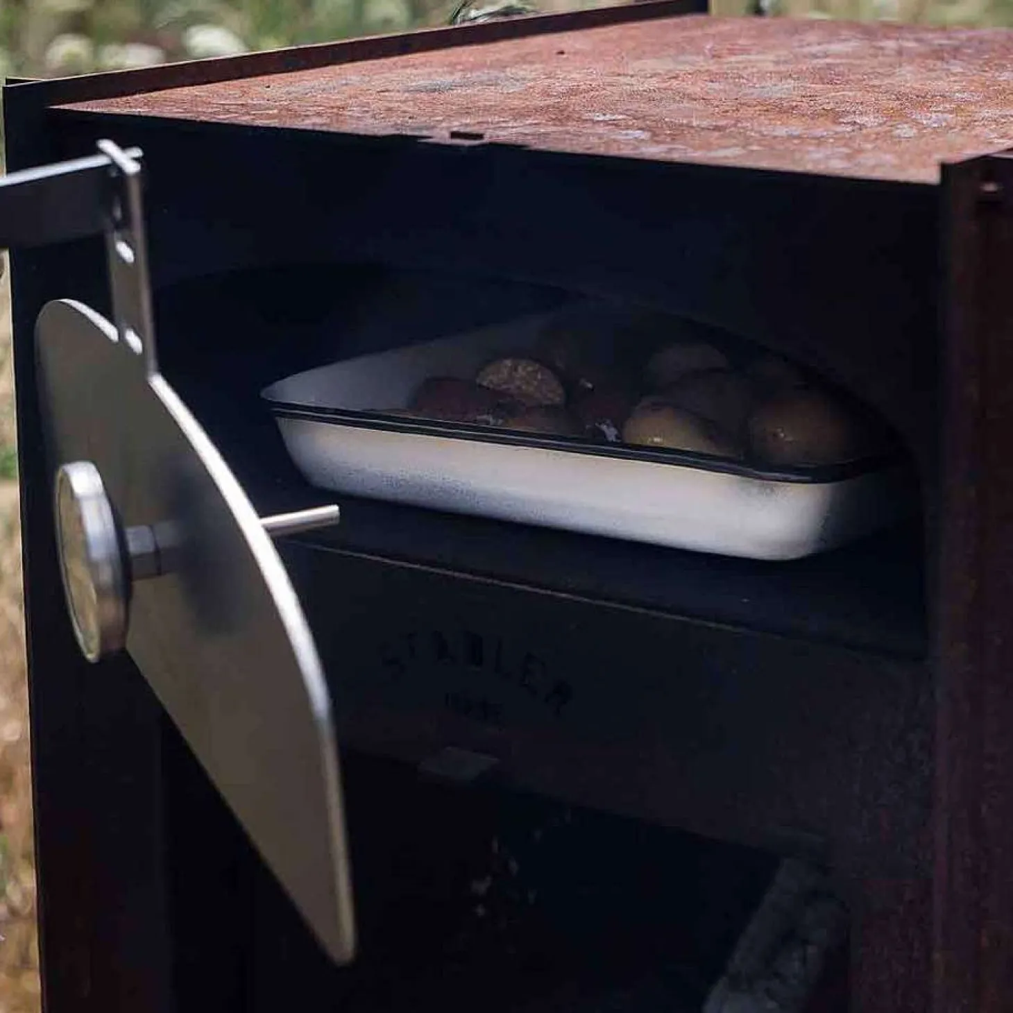 Die Thermotür Outdoor-Ofen von Städler Made ist perfekt zum Kochen und Backen im Pizzaofen geeignet. Durch die formschöne Ofentür wird die Wärme im Innenraum gespeichert und kann perfekt zum Kochen von Fleisch, Fisch oder Gemüse genutzt werden. Mithilfe des integrierten Thermometers kann die Wärmeentwicklung von außen überprüft werden, ohne den Ofen zu öffnen und gespeicherte Wärme freizulassen.
